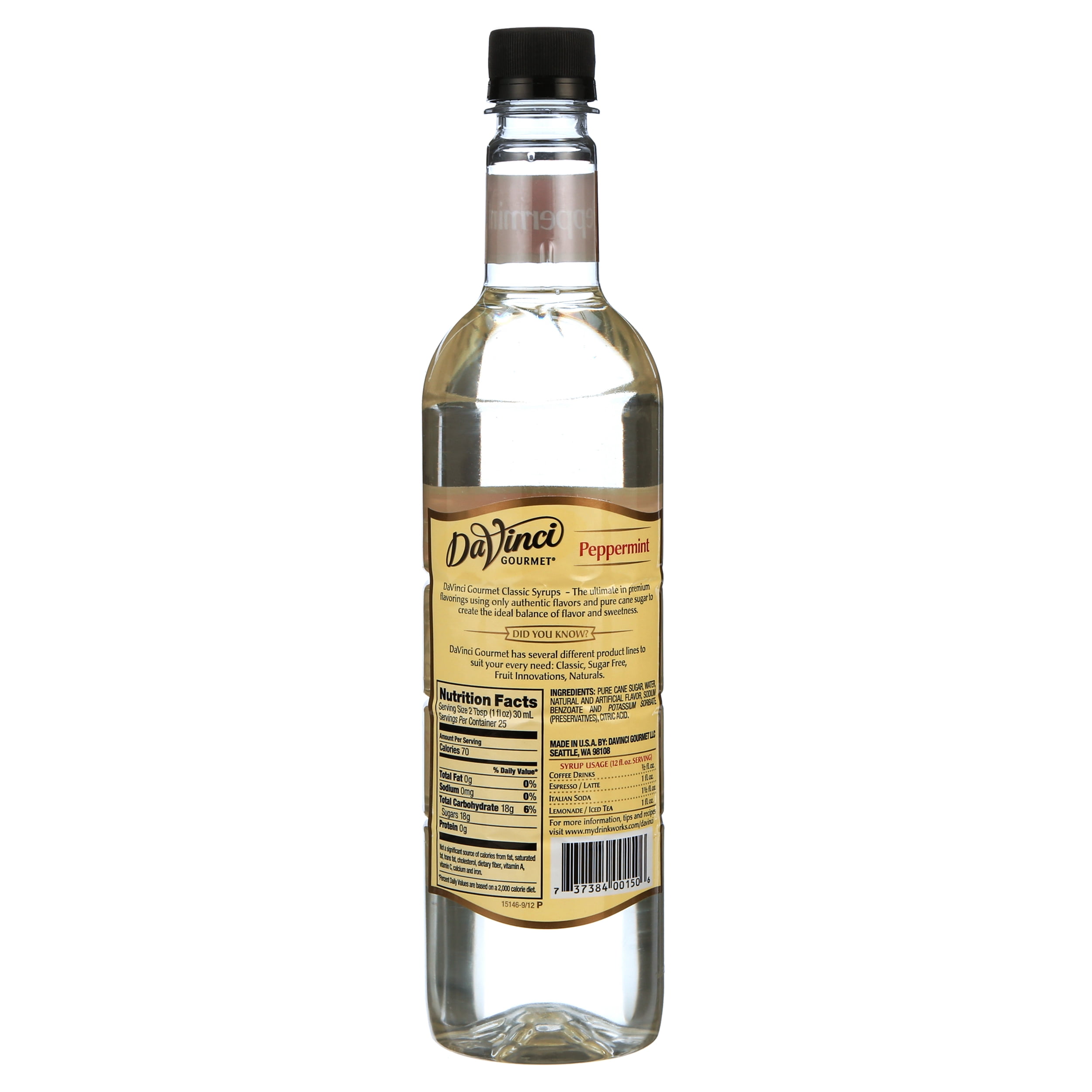 Refresh your taste buds with a fresh twist of cool minty flavor in the Classic Peppermint syrup by DaVinci Gourmet. Made with pure cane sugar, this delicious syrup balances sweetness with an icy cool blast of aromatic peppermint flavor. Add to milkshakes or hot cocoa for a scrumptious seasonal flavor. Use in place of your favorite peppermint syrup or peppermint liqueur, and try your hand at the many peppermint vodka recipes thatll impress your friends. Our classic line of cafe style syrup flavorings is created with the highest-quality ingredients to ensure incomparable flavor. Worldwide, baristas and mixologists trust DaVinci Gourmet to deliver premium quality and great taste. You, too, can indulge in an unforgettable taste experience from the comfort of your home. Flavor every moment.DaVinci Gourmet Classic Syrup, Peppermint, 750ml