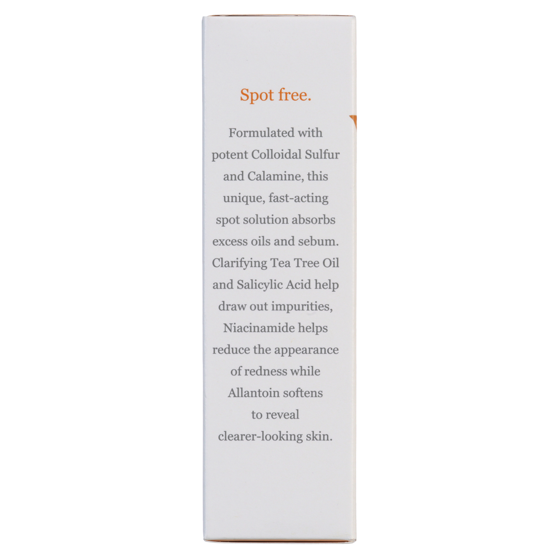 This powerful concentrated spot treatment rapidly clears and helps prevent blemishes while reducing redness and irritation. Sulfur works to minimize oil production while keeping acne-causing bacteria at bay. Salicylic Acid works to exfoliate the skin. Tea Tree Oil helps to alleviate acne causing bacteria. Calamine reduces redness while soothing inflammation. Aloe Vera Gel works to calm and soothe while Witch Hazel works to remove excess oil and tone. Skin is clear, clean and blemish-free in this intense acne spot treatment.