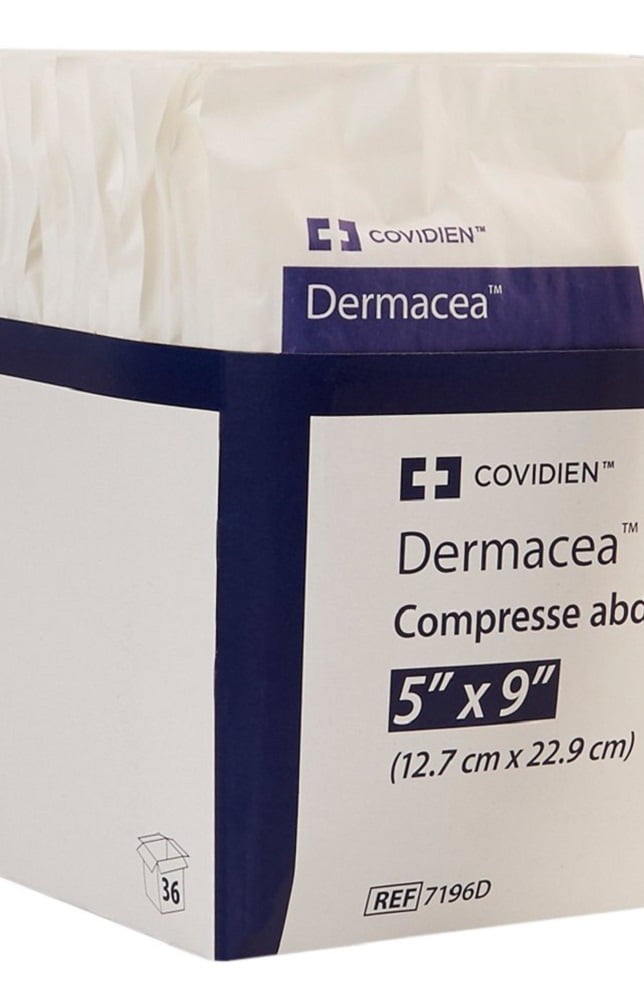 Dermacea Abdominal Pad Non-woven Fluff, 5 X 9 Inch, Rectangle, Sterile | Tray of 36