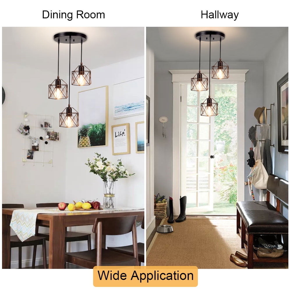 This 3-Light chandelier has a cutout design that facilitates better heat dissipation and easier lamp replacement. The black metal design will never be outdated, this is a choice that will not regret! This pendant lighting fixture provides a high-quality illumination in your home, presenting a wonderful artistic style and creating a cozy ambient in your indoor space with soft light. The ceiling fixture used high-quality iron and black painted finish, industrial and vintage style. The open-air design of the black chandelier protects the bulb and maximizes its light and adds a touch of style. This hanging light perfect for use in Kitchen Island, Bedroom, Dining room, farmhouse, Entryway, Hallway, Living room.