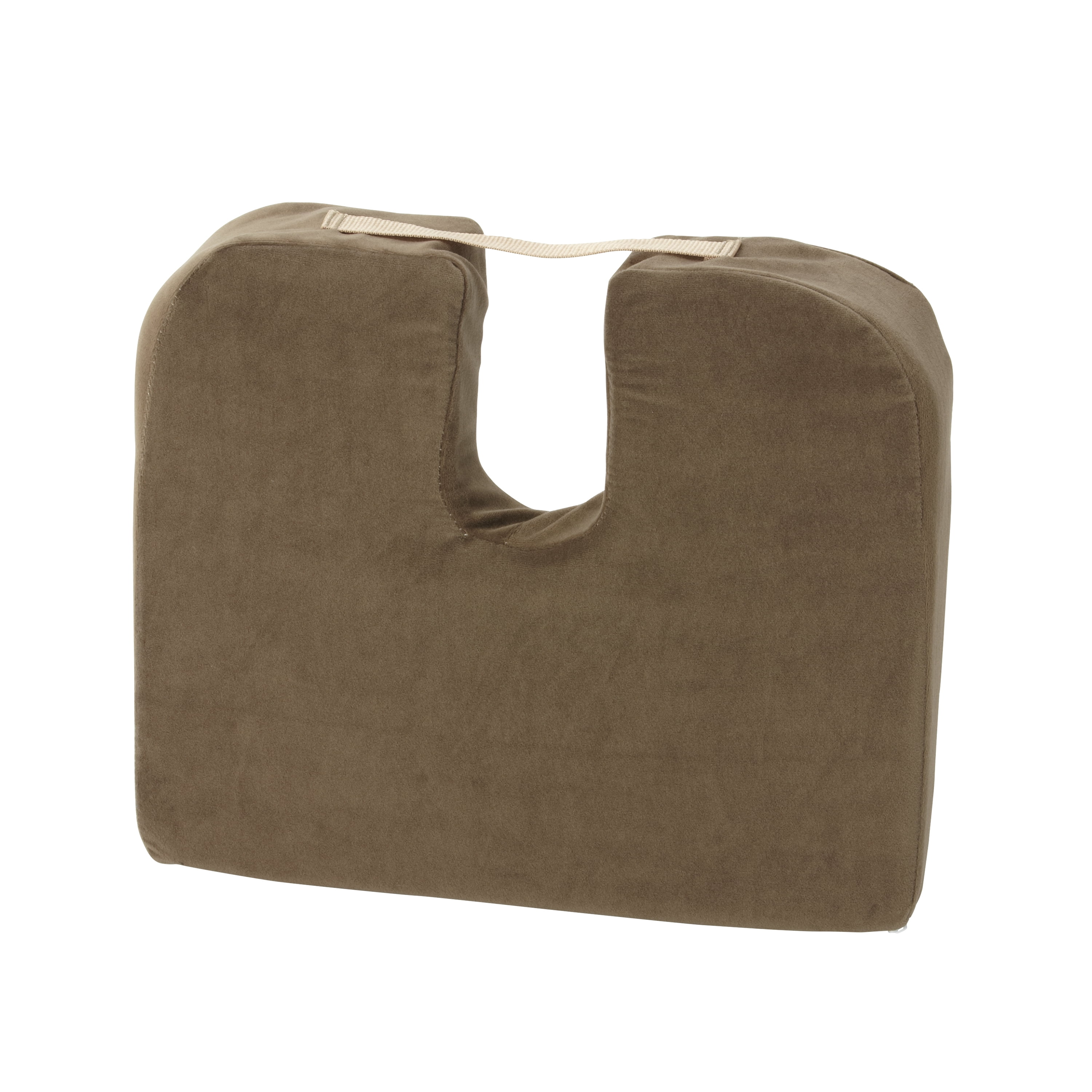 Help reduce the pressure on your lower back and tailbone while sitting for extended periods, especially on hard chairs. This DMI Sloping Seat Cushion will not only give you comfort and support, but will help align your spine in the proper position. The three-inch opening provides relief for the coccyx area while the sloping angle positions your body correctly to avoid slouching. This coccyx support cushion is great for use on office chairs, at home, in your car or while traveling. It’s also ideal to take to special events to cushion yourself on hard stadium seats. It comes with a machine washable cover and built in carry handle.