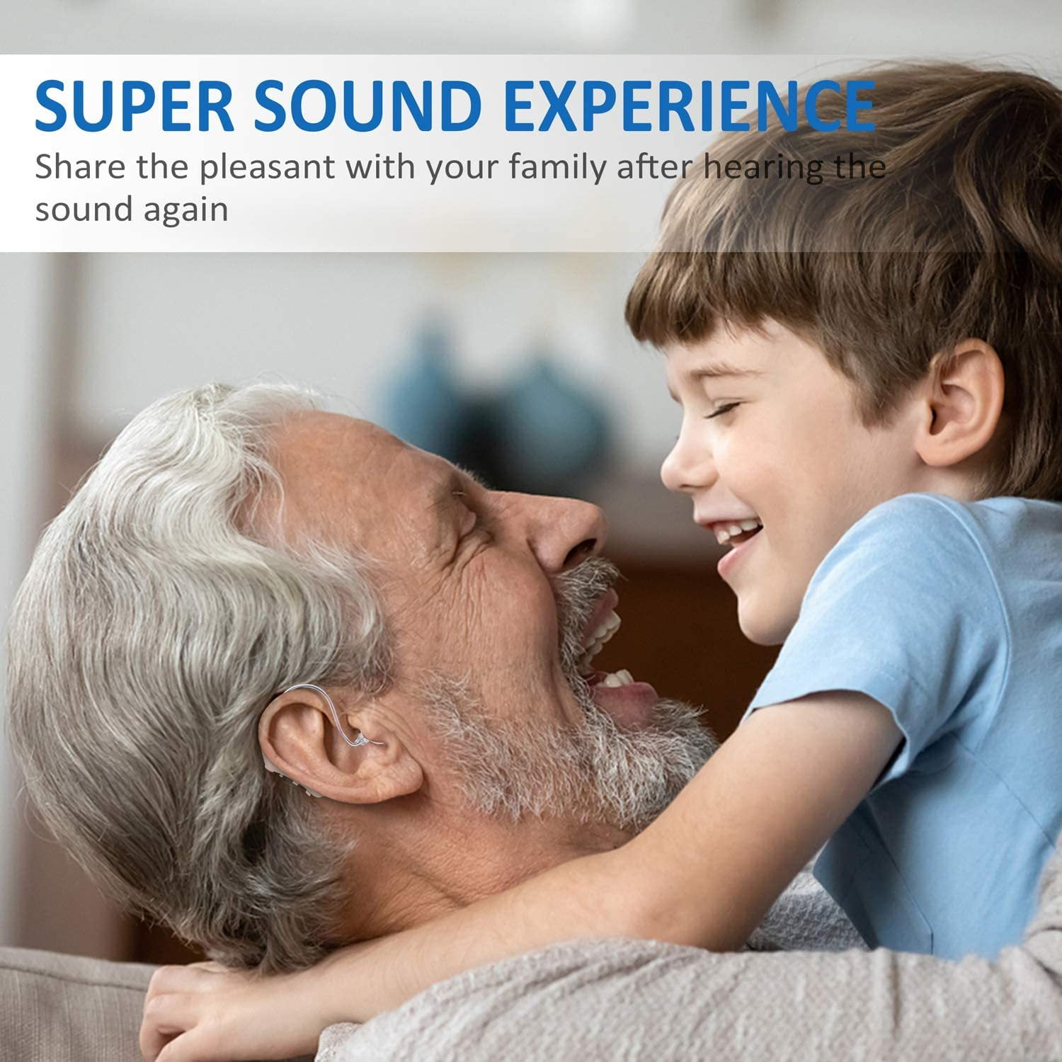 Upgraded Personal sound amplifiers: 44.8% Improvement Compared to the Previous Generation. RIC Design reduces the chance of Howling and is not Easy to fall off, strengthen the surrounding vocals, weaken the environmental noise, advanced noise-canceling, feedback suppression & background reduction.