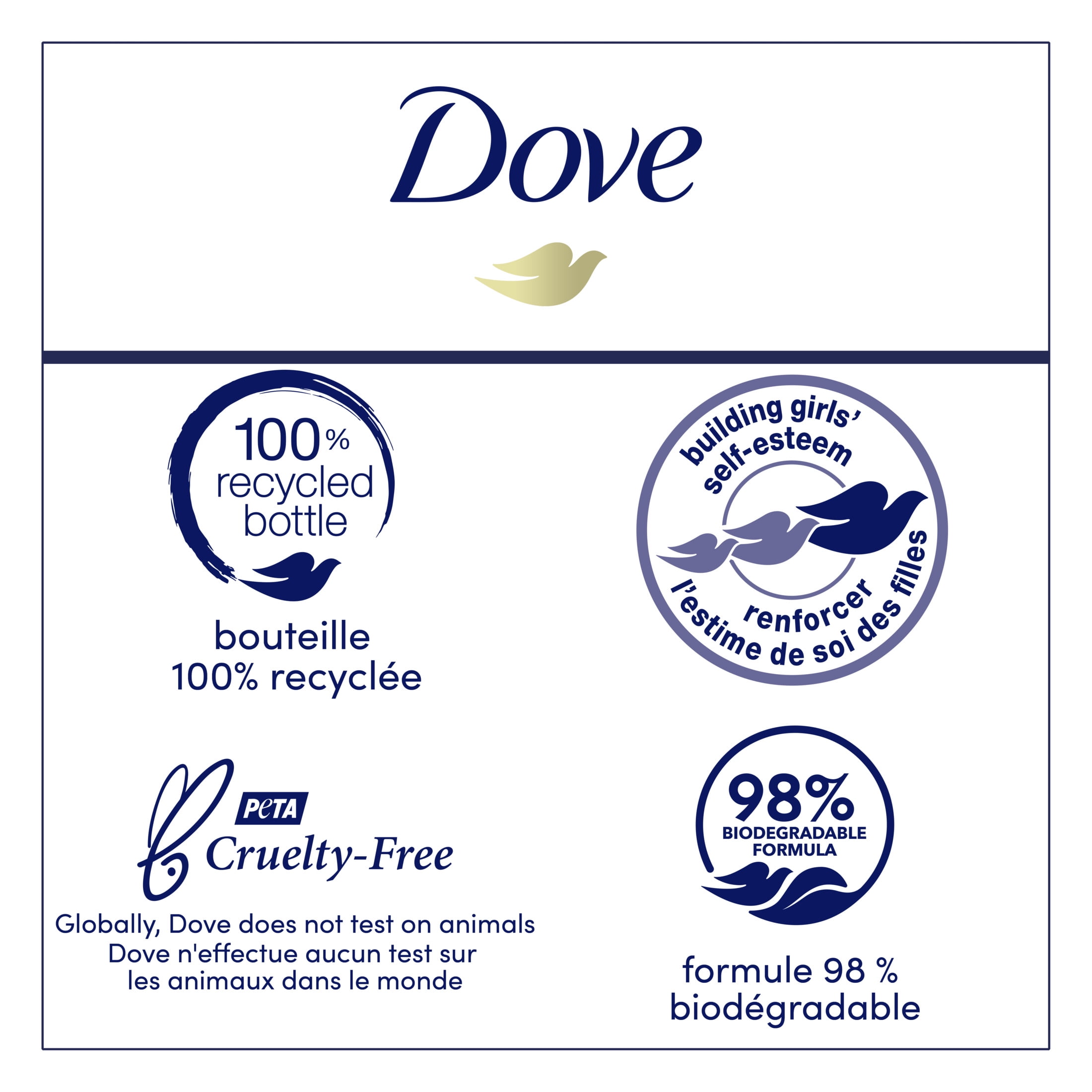 - THOUGHTFULLY MADE: This body wash is PETA-certified cruelty-free and made in 100% recycled plastic bottles so you can feel good about switching from shower soap to Dove