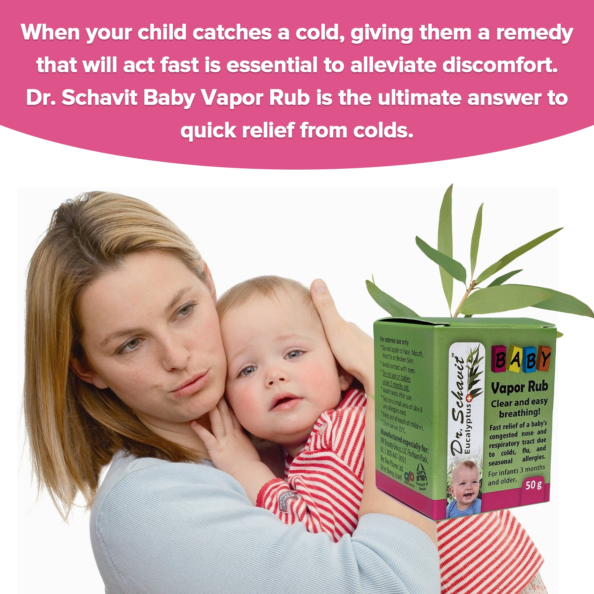 - RELIEF FROM COLDS – When your child catches a cold, giving them a remedy that will act fast is essential to alleviate discomfort. Dr. Schavit Baby Vapor Rub is the ultimate answer to quick relief from colds.