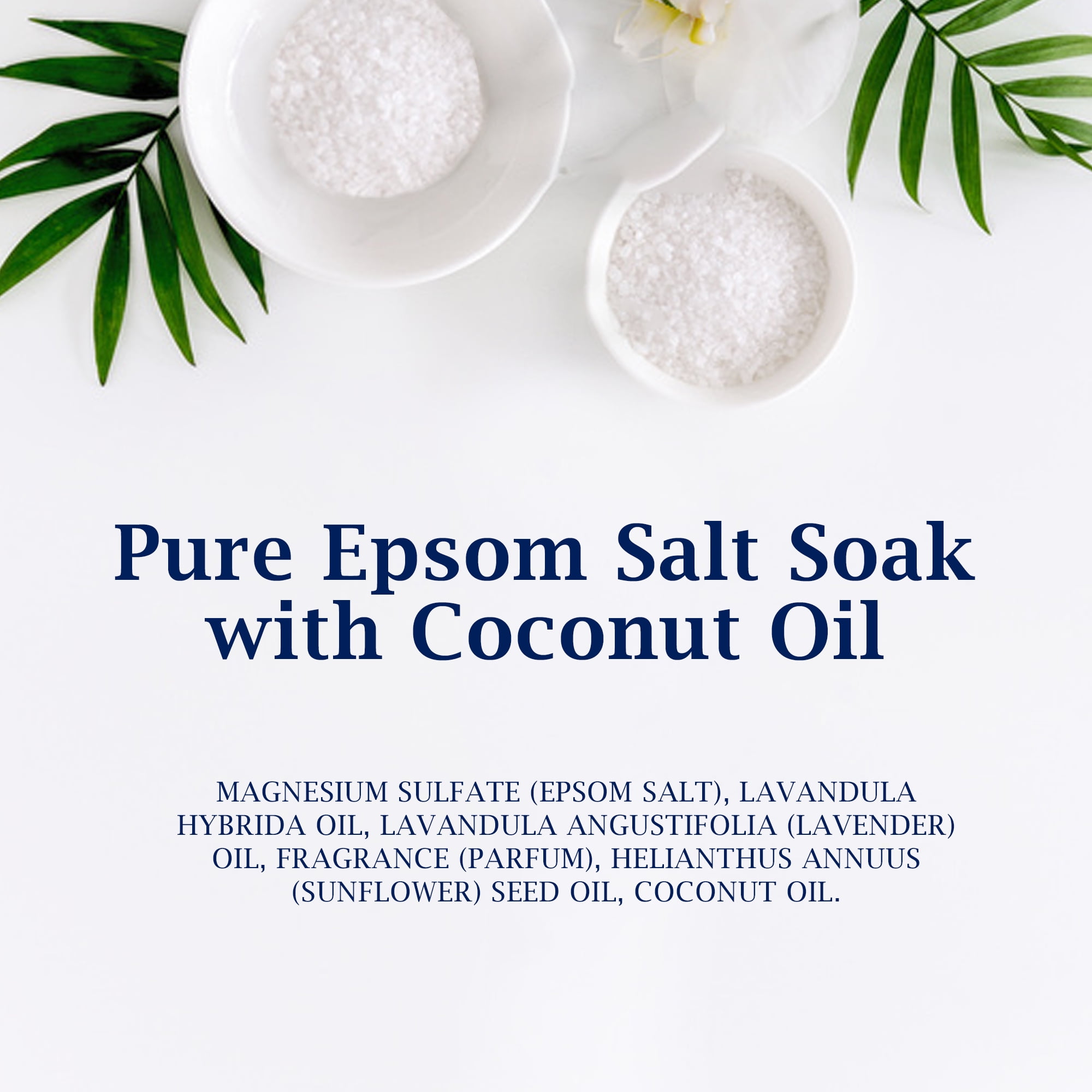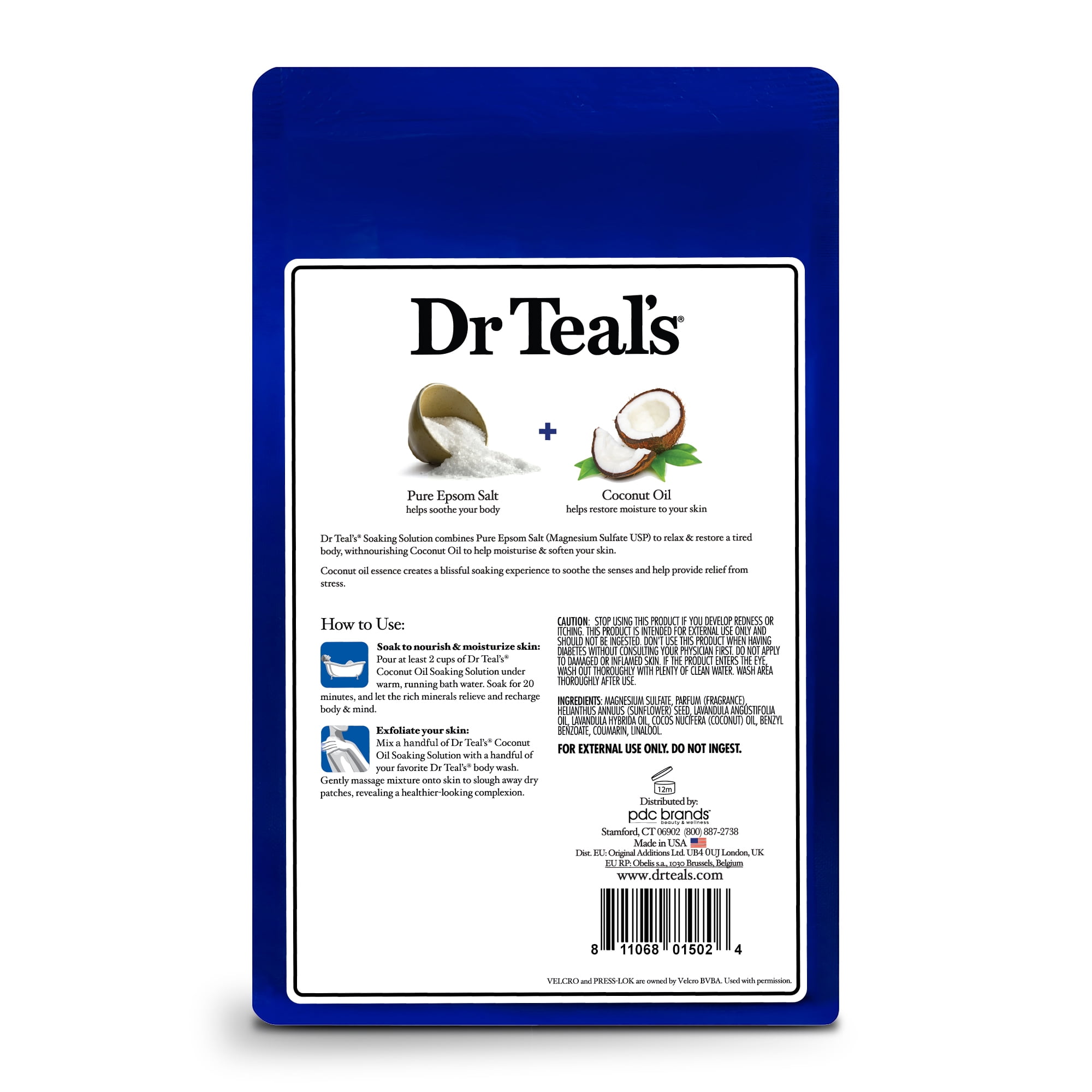 Dr Teal’s Soaking Solution combines Pure Epsom Salt, which has long been known to revitalize tired, achy muscles, with nourishing Coconut Oil to help provide ultimate skin nutrition. Coconut Oil essence creates a blissful soaking experience to soothe the senses and help provide relief from stress. Pour at least 2 cups of Dr. Teal’s Coconut Oil Soaking Solution under warm, running bathwater. Soak for 20 minutes, and let the rich minerals recharge body and mind.