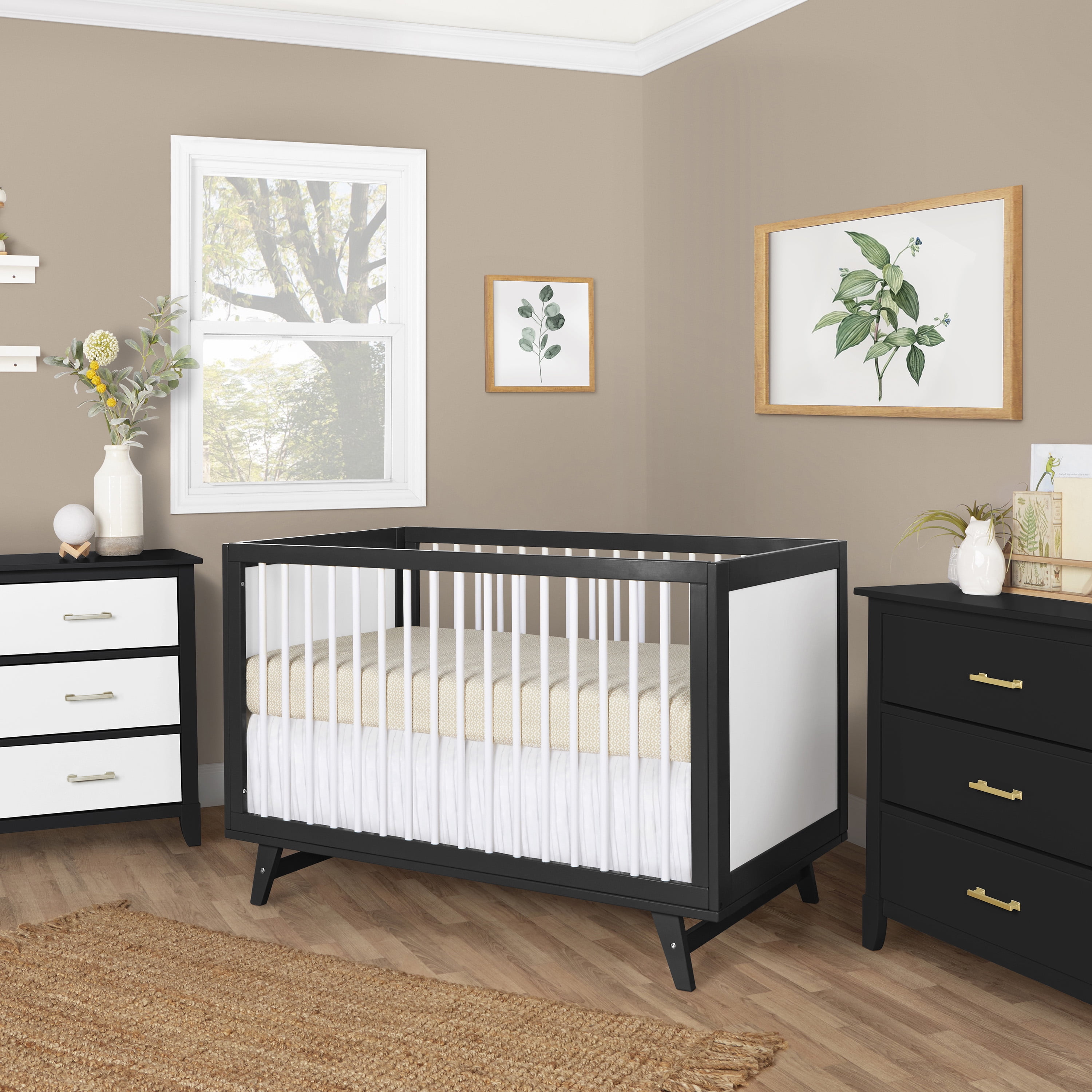 Dream On Me Carter 5 in 1 Full Size Convertible Crib, Black And White
