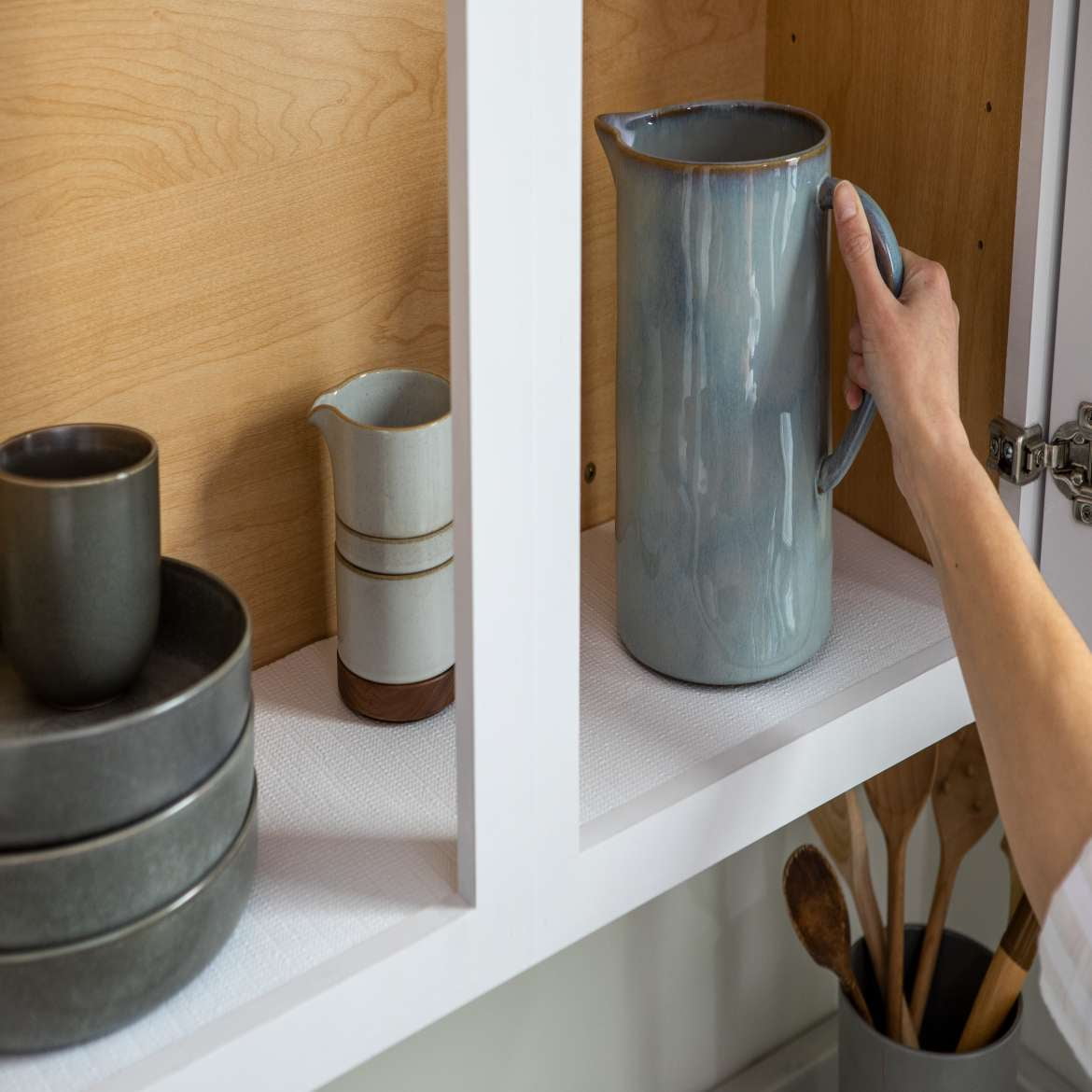 Smooth Top EasyLiner Brand Shelf Liner provides an easy-to-clean surface for cabinets in your kitchen, bath and laundry room. The non-adhesive grip bottom keeps the shelf liner in place and doesn’t leave a sticky residue, while the smooth top lets you easily slide objects across. With a variety of colors and trendy patterns, you can bring new life to cabinets just cut, apply to your surface and style away.