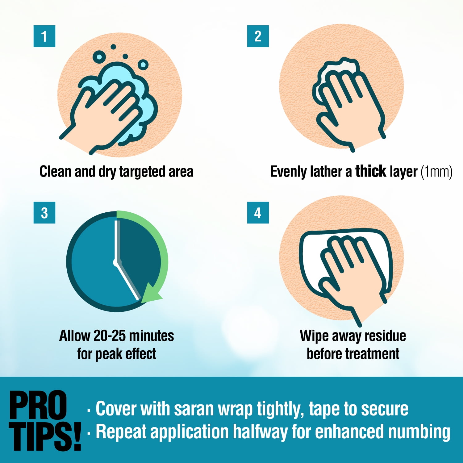 - Apply before, during & after treatment. Odor-free, oil-free & non-greasy. Water-based numb cream for easy application and removal