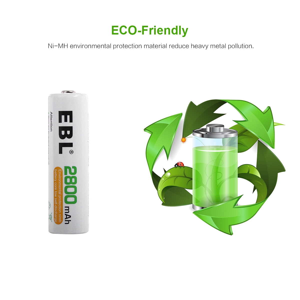 EBL 16-Pack 2800mAh 1.2V AA Battery Ni-MH Rechargeable Batteries For RC, Toys, Game Controllers: