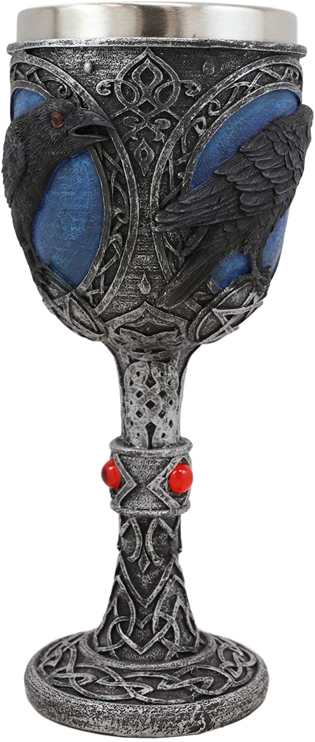 • This is an Ebros Gift exclusive collection. It comes with our Ebros Gift Satisfaction Guarantee when sold by Ebros Gift.Ebros Moonlight Raven Crow With Celtic Tribal Tattoo Wine Goblet Chalice 7.25"H