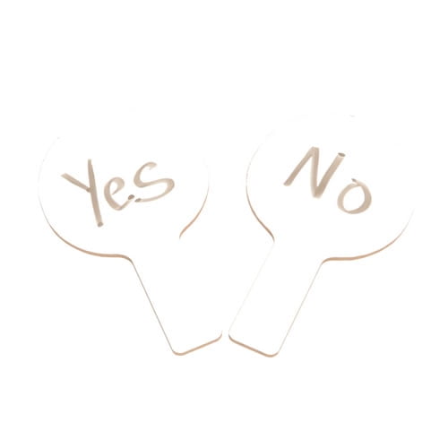 Quick and quiet whole class participation made easy with Mini Dry Erase Answer Paddles. Great for review sessions, surveys, assessment and more! Non-ghosting dry erase surface with a rounded shape, an easy grip handle and smooth edges. Hardboard backing is warp and chip resistant. Measures 5" wide x 9" high x 0.25 deep". Pack of 12. Made in USA.