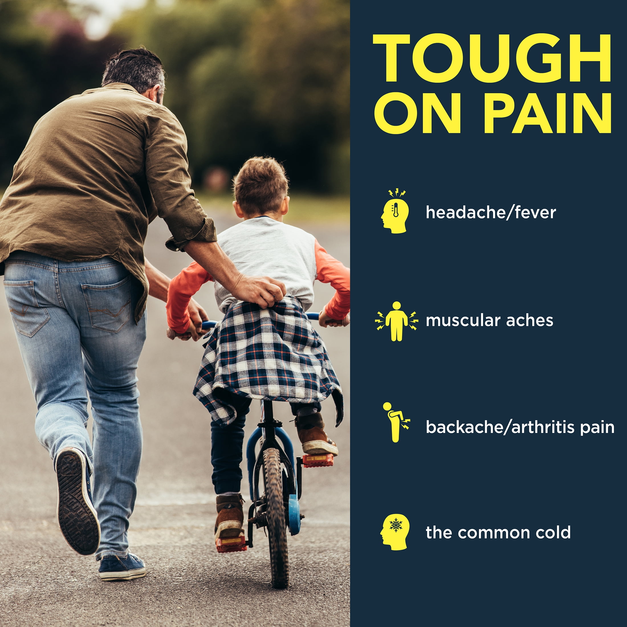 - Powerful Pain Relief You Can Trust: Temporarily relieves minor aches and pains due to headache, muscular aches, minor pain of arthritis, toothache, backache, the common cold and menstrual cramps, and temporarily reduces fever