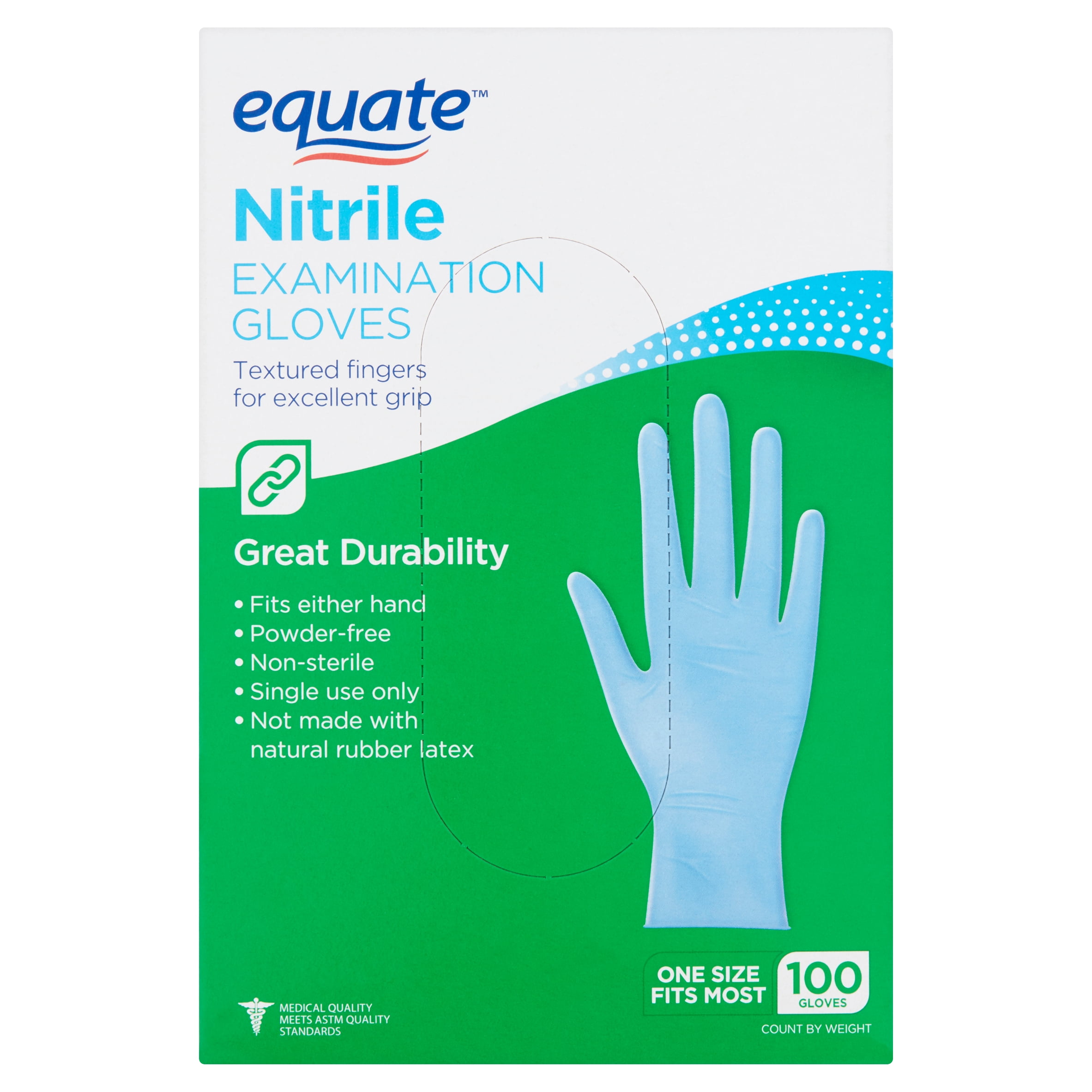 Equate Nitrile Examination Gloves keep your hands clean and free of bacteria or dangerous chemicals. These high-quality, multipurpose gloves are an excellent choice when you’re performing first aid, preparing food, coloring your hair, cleaning, doing arts and crafts, and more. The textured fingers help to provide consistent grip in wet or dry conditions and allow for dexterity when handling tools, small parts, utensils, or other tiny or delicate instruments. The multipurpose gloves are made for stretchable durability and fit most hands. They also come in a 100-count, easy-dispense pack that keeps them clean and allows you to grab a pair quickly when you need them. If you have skin allergies or sensitivities, rest assured knowing the Equate nitrile gloves are powder-free, non-sterile, not made with natural rubber latex, and meet ASTM quality standards.