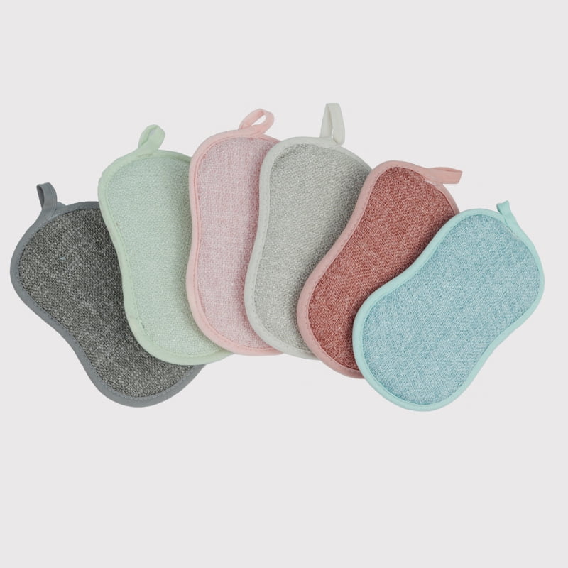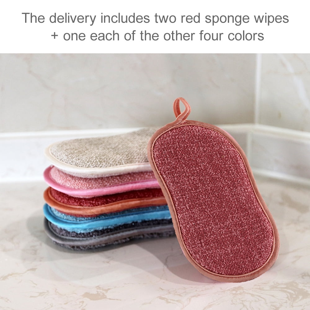 6PC Dishwashing Brush Household Double Sided Dishwashing Sponge Wipe Block Kitchen Rag Magic Wipe to Remove Oily. Set includes 6 scouring pads, which have different materials on two sides, can rub the stains and dirt easily and quickly. Perfect choice to clean dishes, pots, car, wash basin, table, glass and much more.