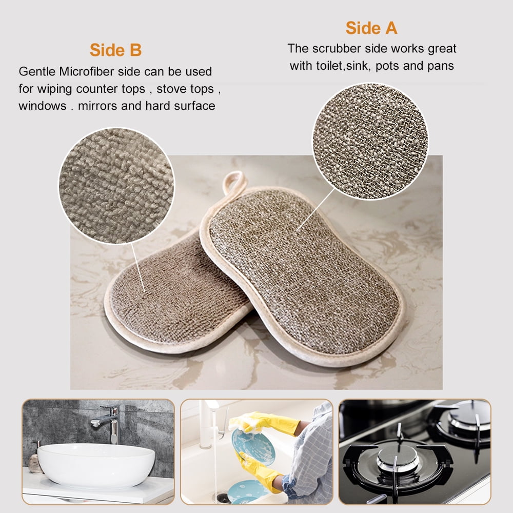 - Different materials on two sides, it can rub the stains and dirt easily and quickly, and help eliminate odors as well.