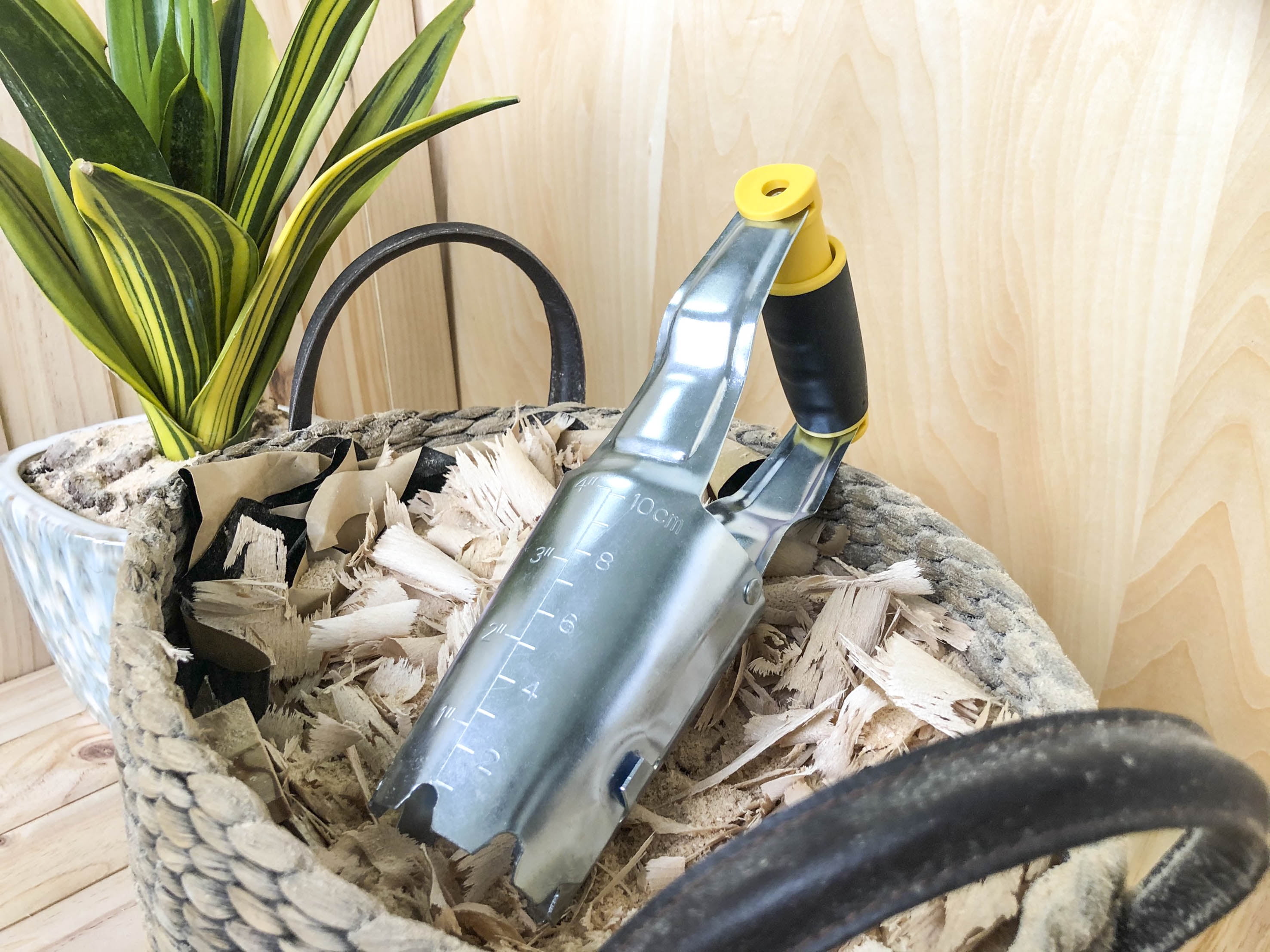 Expert Gardener adjustable bulb planter in black and yellow by Formosa Tools. When it is time plant tulips or bulbs, this Expert Gardener adjustable bulb planter is a must have. The Expert Gardener adjustable bulb planter features a reinforced steel, an adjustable handle hinge, a soil release mechanism, and a depth marker. For hard to penetrate soils this bulb planter features reinforced chrome plated steel that keeps the tool from bending and allows for quicker planting. The adjustable soil release feature is operated by pushing the thumb button into the ergonomic handle, which causes the soil to fall into the hole where the bulb is planted. Tools bulb planter makes bulb planter more precise with a depth marker from 1 to 4 inches. The high visibility Sunray Yellow makes it easy to see and locate, reducing the time and hassle of looking for your tool, and letting you get to work faster. A great choice for the Expert Gardener.