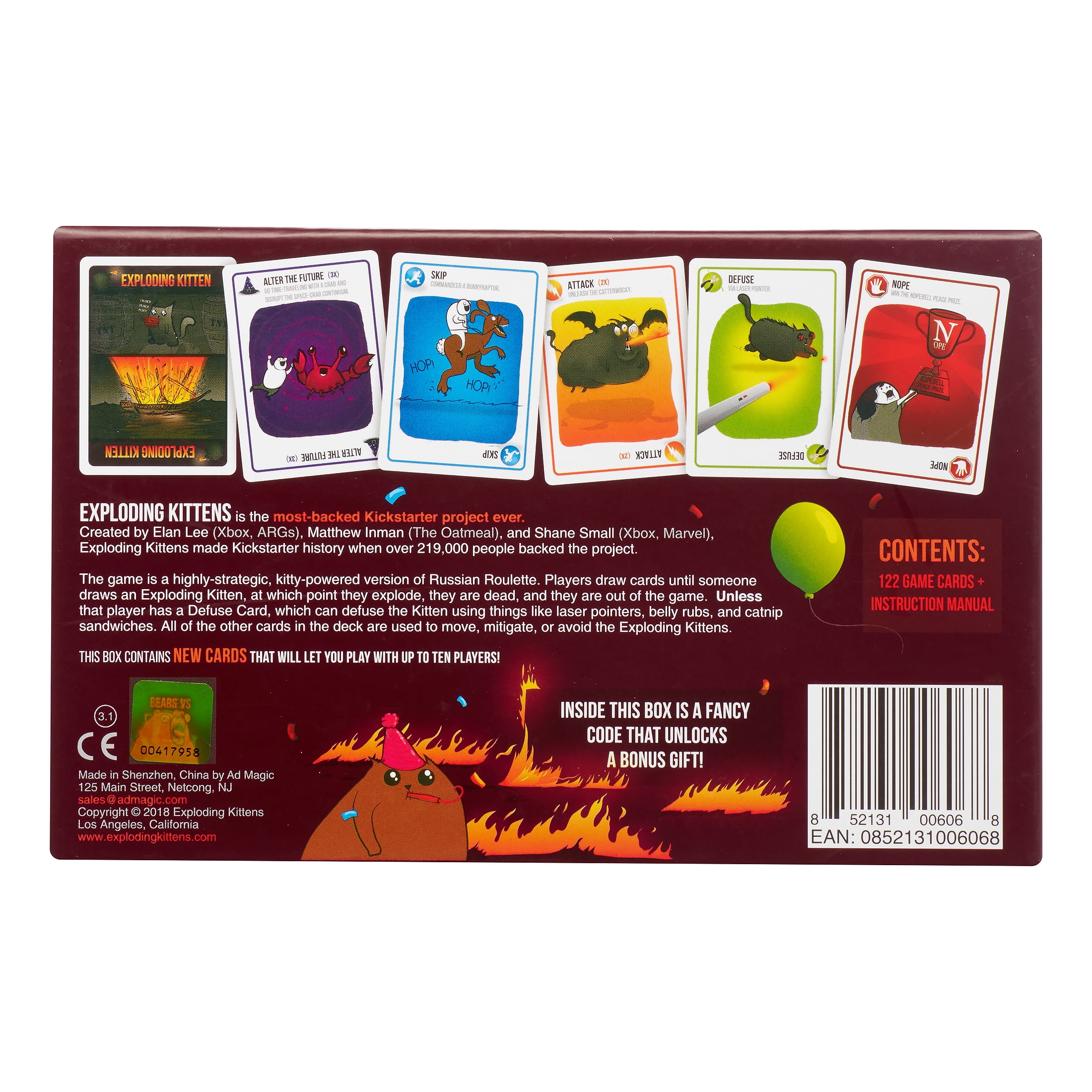 - The Party Pack is the same family-friendly game as Exploding Kittens but now for up to 10 players!