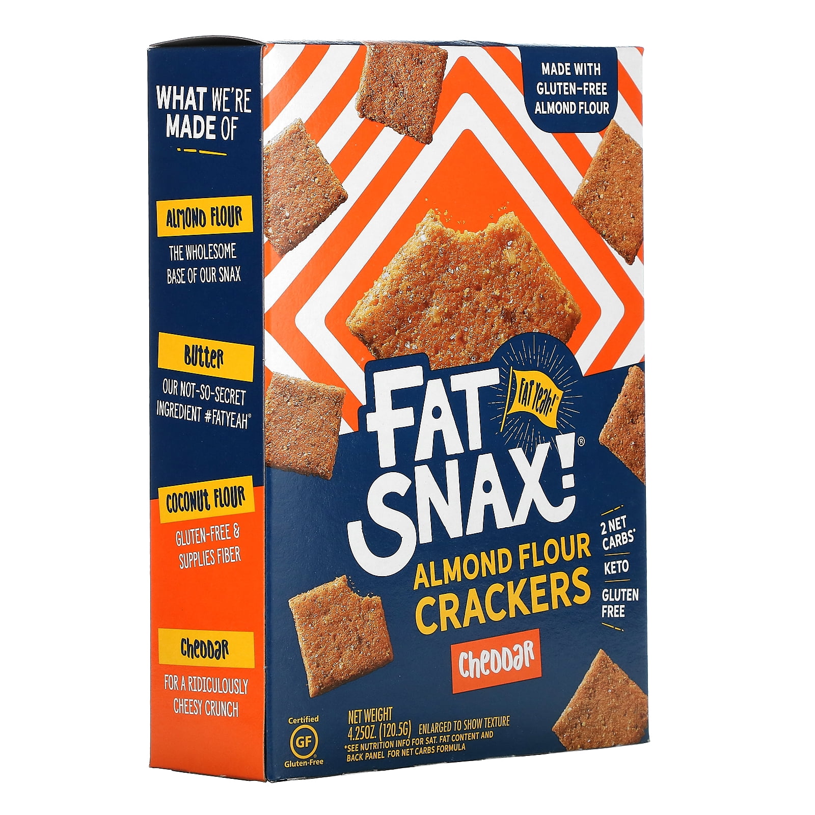 Fat Snax, Almond Flour Crackers, Cheddar, 4.25 oz Pack of 2