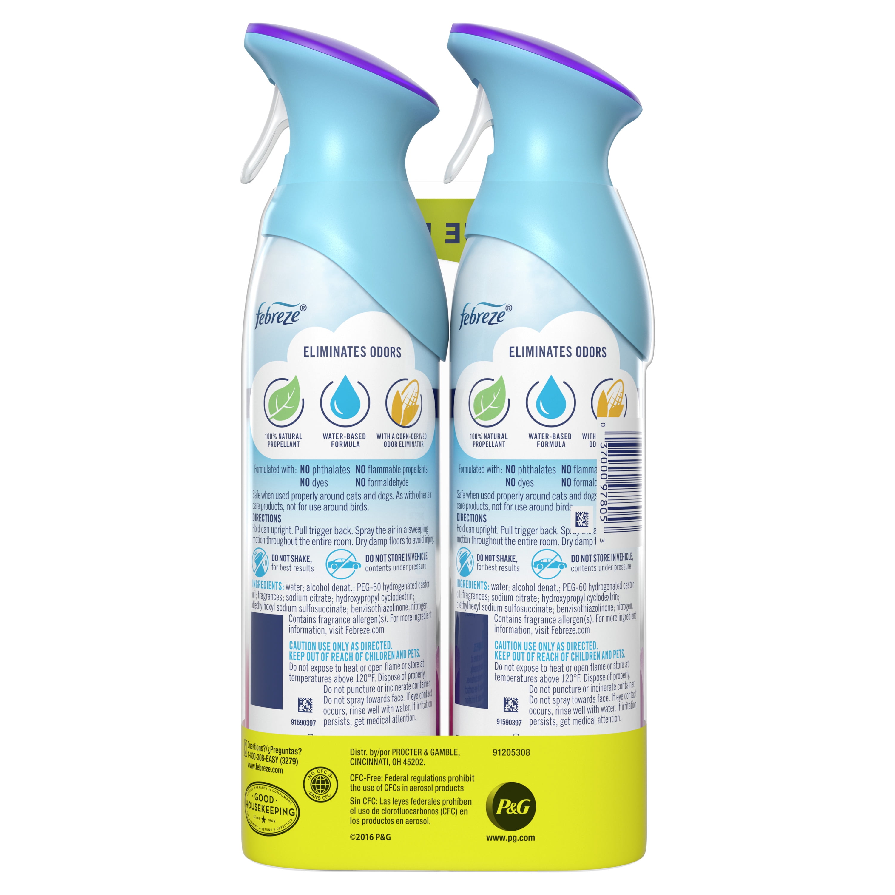 Odors. They’re everywhere… lingering in the air or arising at the most awkward times. Forget masking them with some froo-froo spray; Febreze Air Effects actually eliminates air odors. This can of ahhh-some straight up removes stink with a neat little molecule called cyclodextrin (Bonus: It’s naturally made from corn). It’s a handy air freshener that’s easy to use: Simply spray in a sweeping motion and clean away those bad smells anywhere: the bathroom, the kitchen, that cabin you rented for the weekend, the shoe closet, your kids’ room… anytime you want an instant burst of fresh. And because Febreze AIR uses 100% natural propellants, you can confidently freshen your home every day. Looking for even more ways to breathe happy with Febreze? Take the freshness on the road with CAR Vent Clips.