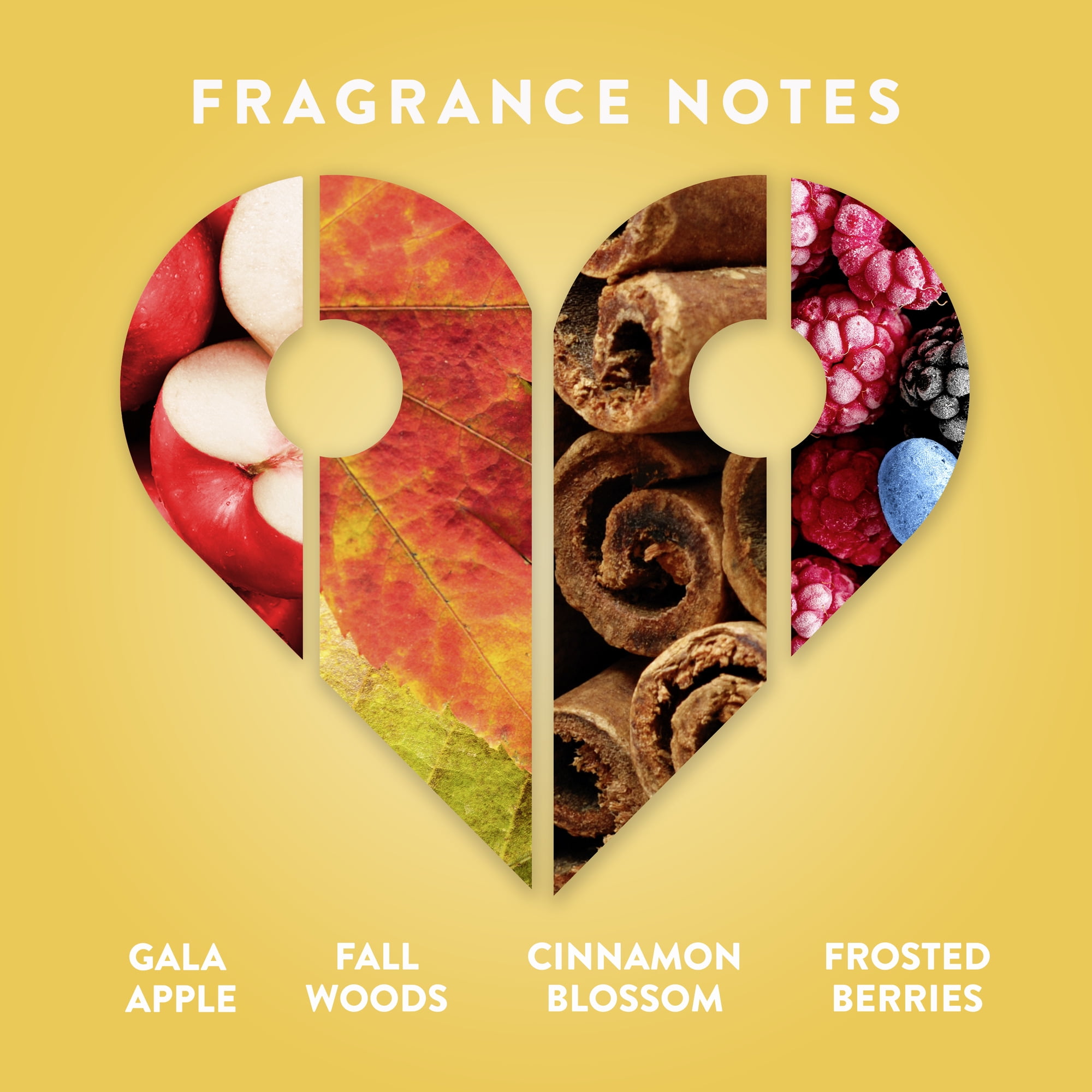 - Breathe in notes of gala apple, fall woods, cinnamon blossom, and frosted berries in this scented candle designed to help you feel invigorated and nostalgic.