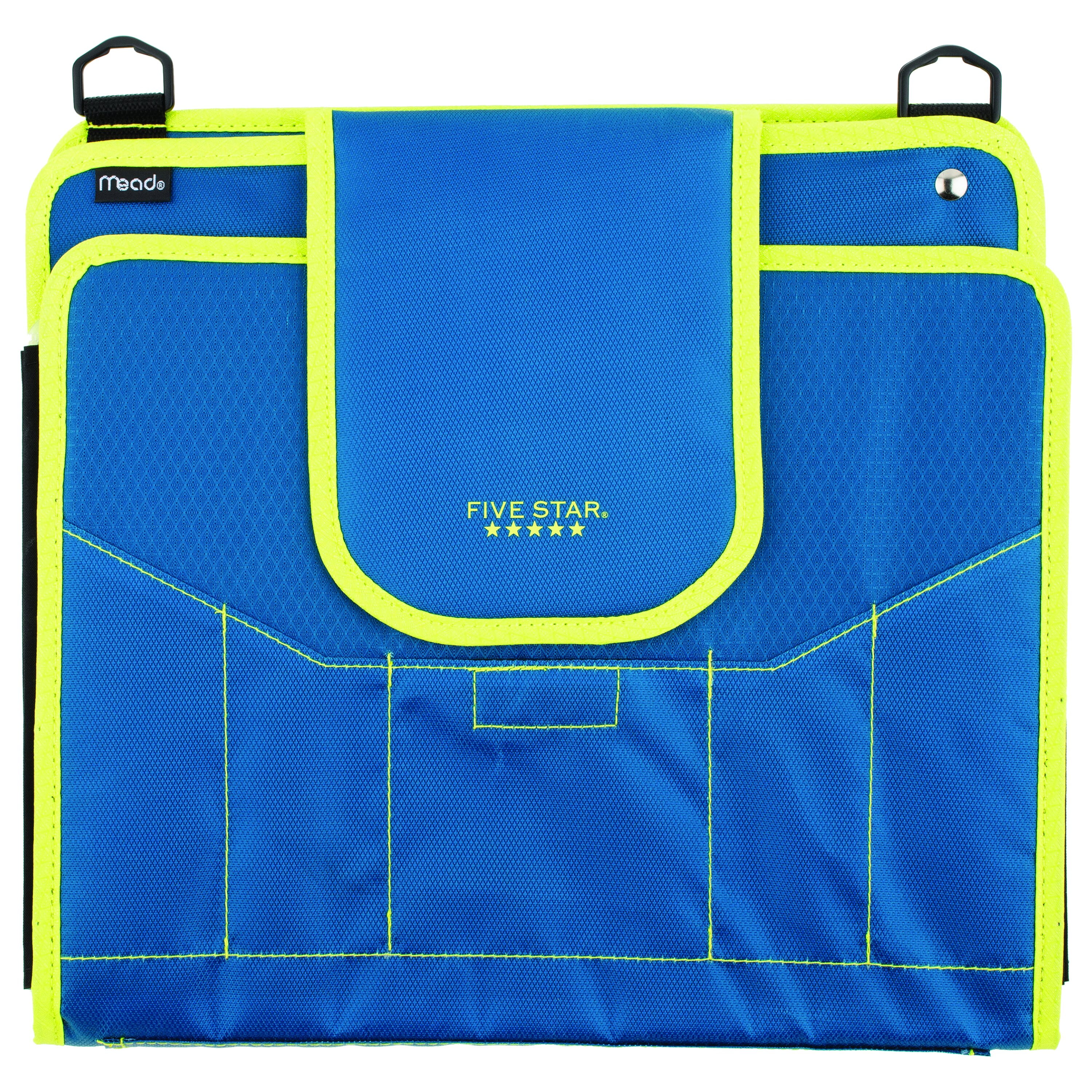 Expanding pockets on exterior and interior of binder provide storage for textbooks, notebooks, folders or up to 150 sheets