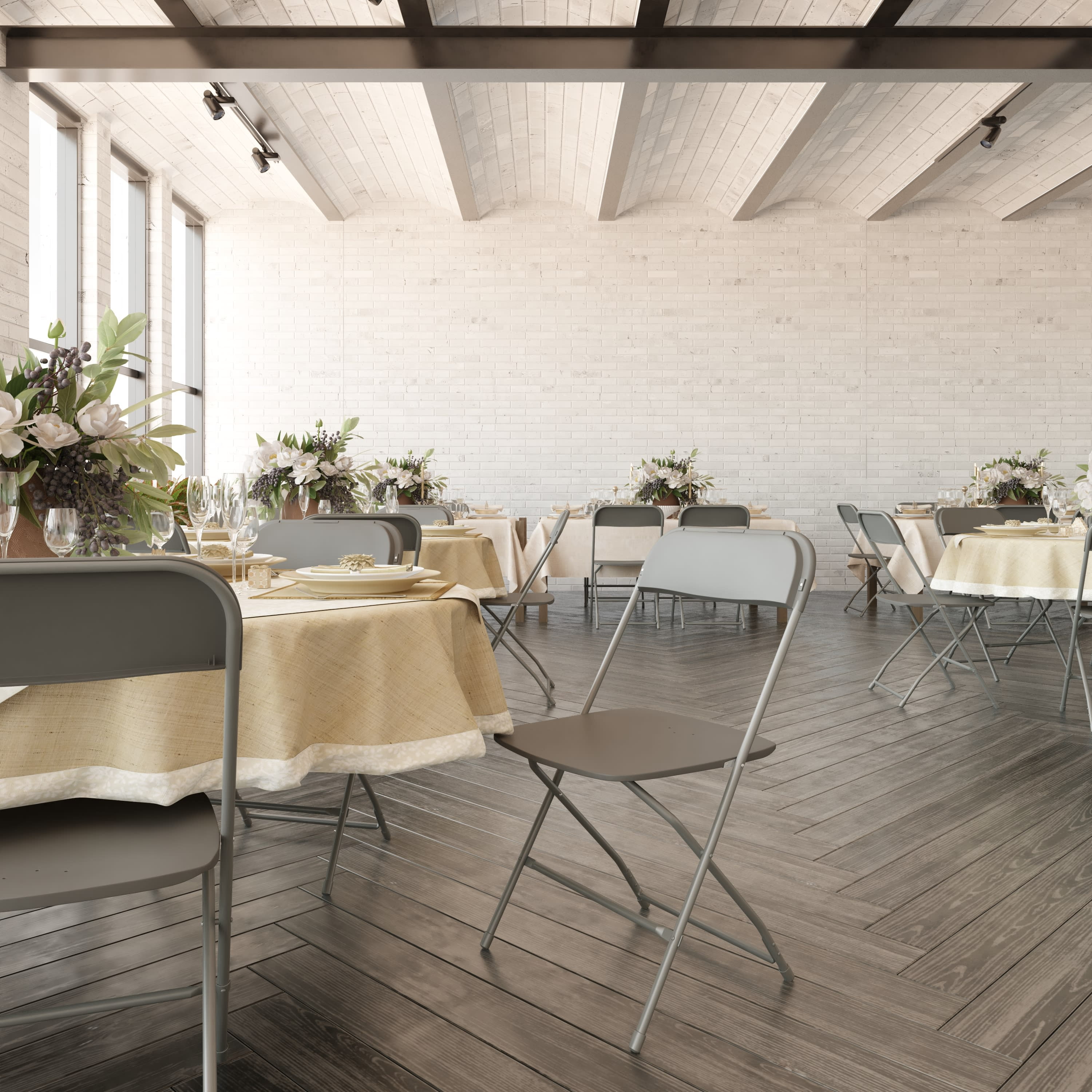 With no assembly required, these easy clean, multipurpose folding chairs provide quick setup and takedown and are a smart investment for your rental business, corporate training rooms, or for extra seating in your home.