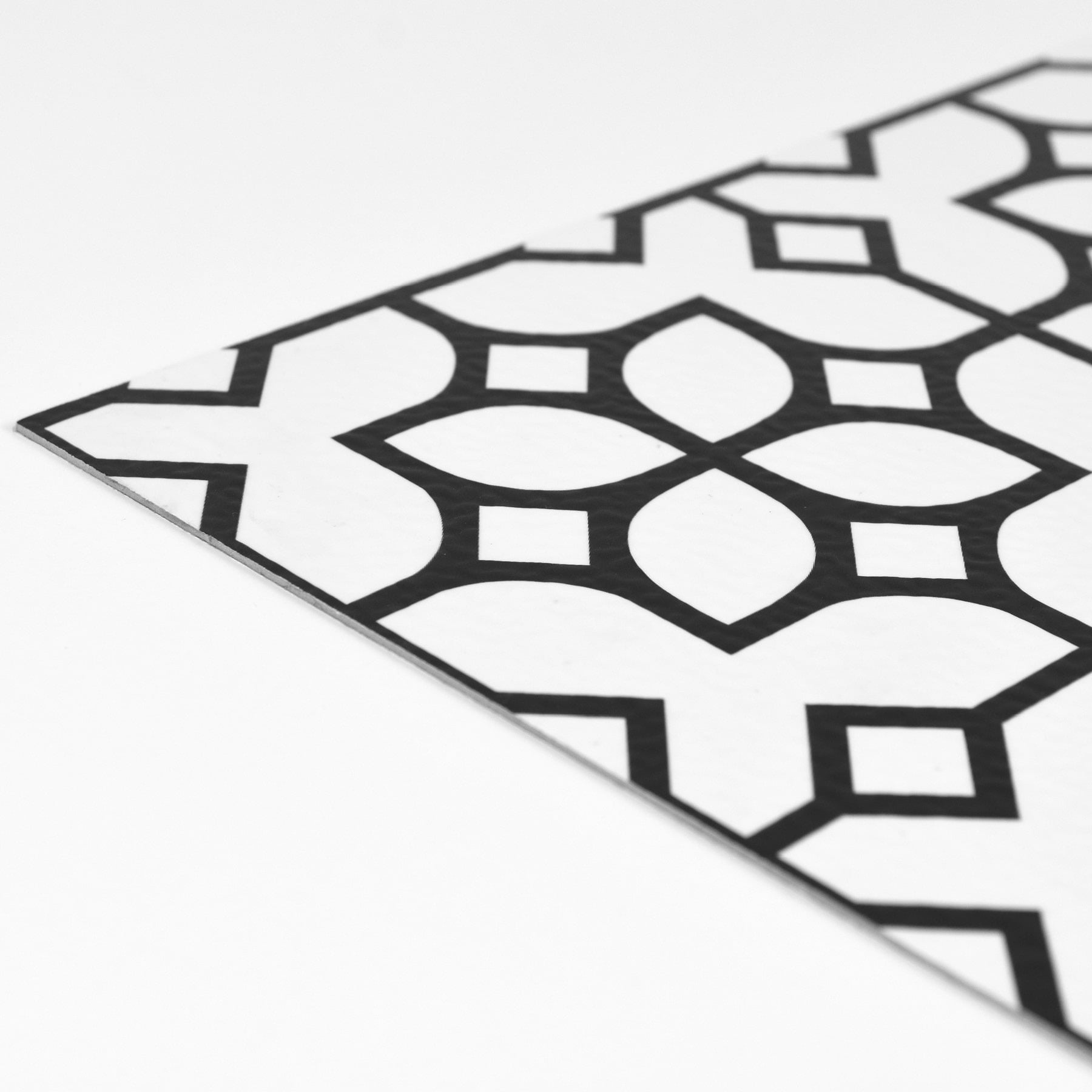 Create a classic and stylish look with these black and white floor tiles. The geometric design has an ironwork flair perfect for a variety of rooms. Abbey Floor Tiles contains 10 pieces on 10 sheets that measure 12 x 12 inches. This product measures 60 x 24 x 0.06 when assembled.