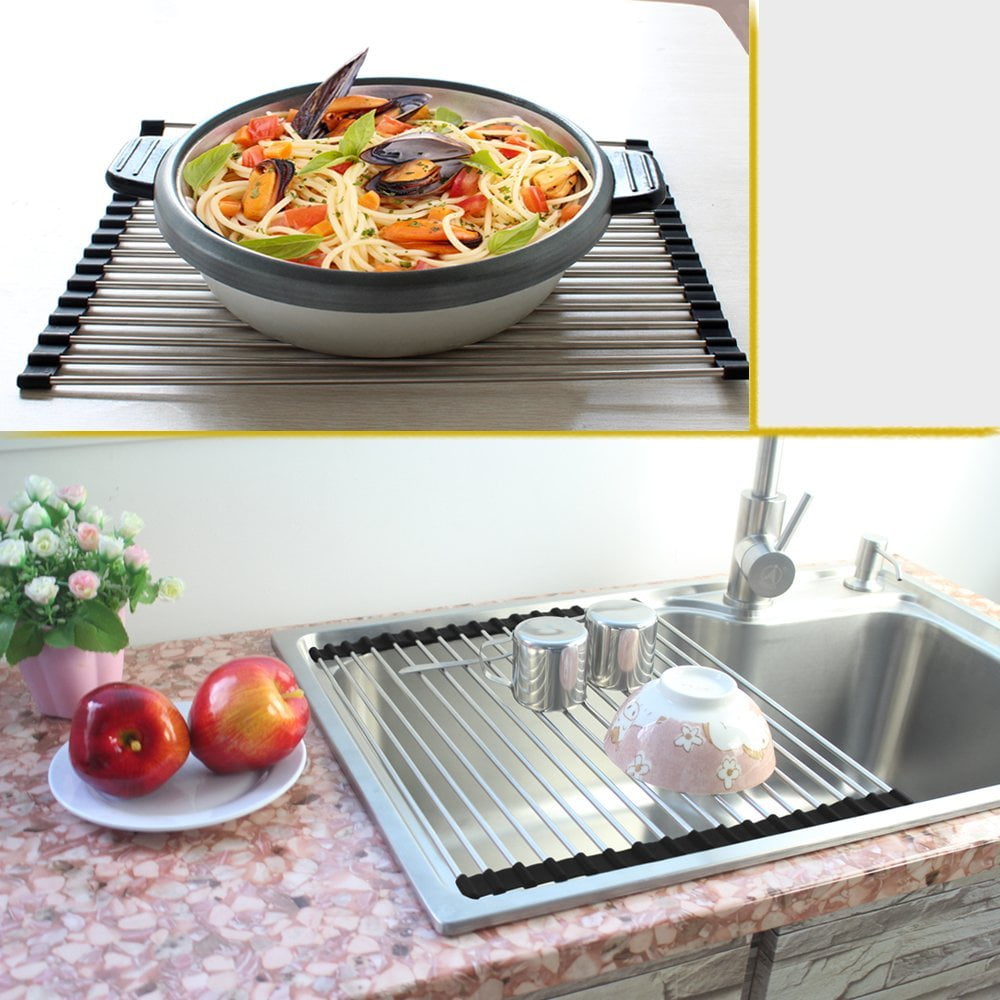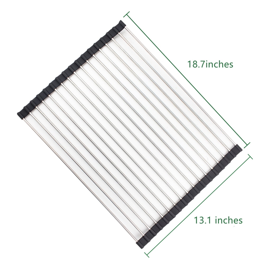 Foldable Gray Silicone Over the Sink Dish Drying Rack, Roll up Dish Drainer