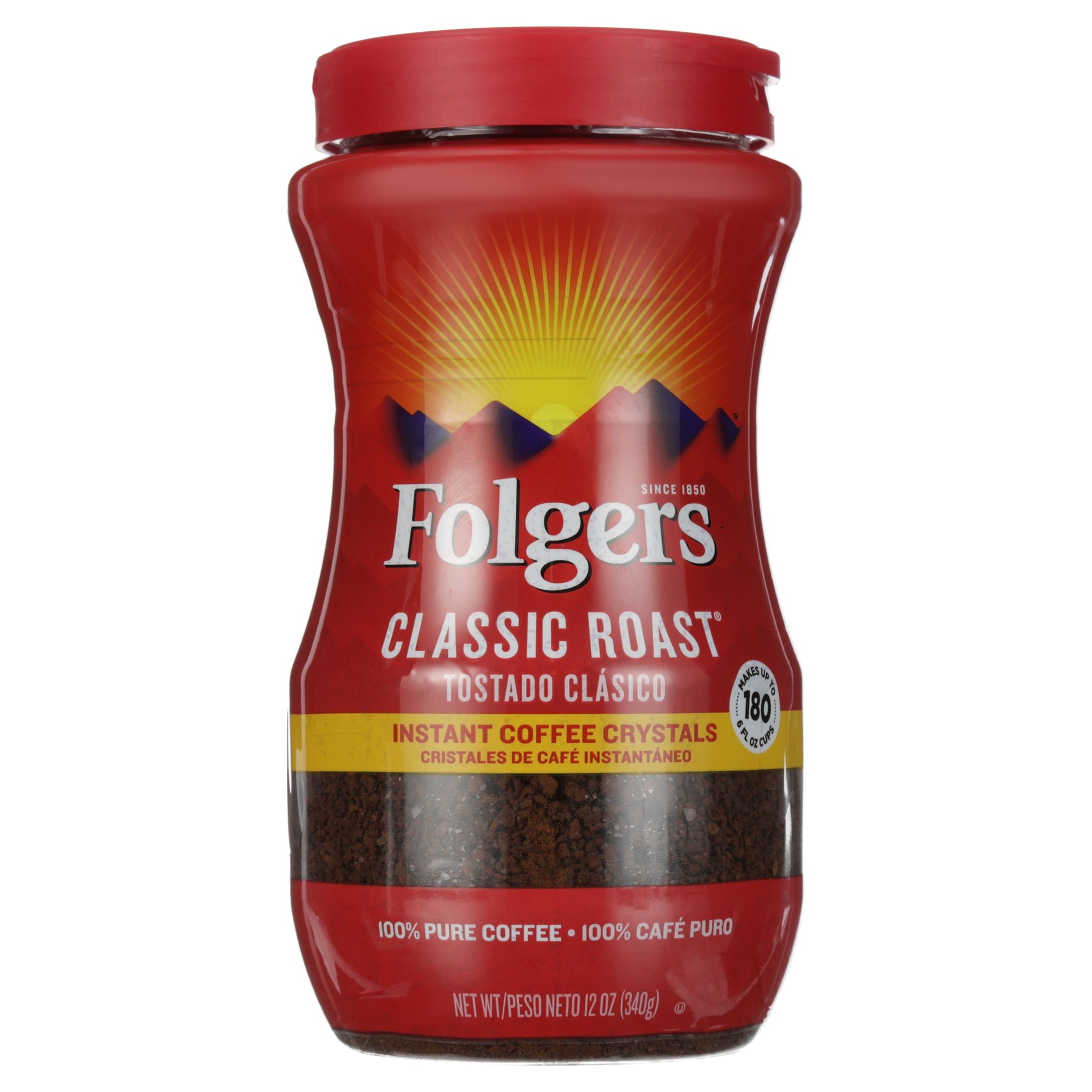 - Contains one (1) 12 ounce easy-open flip-top jar of Folgers Classic Roast instant coffee crystals