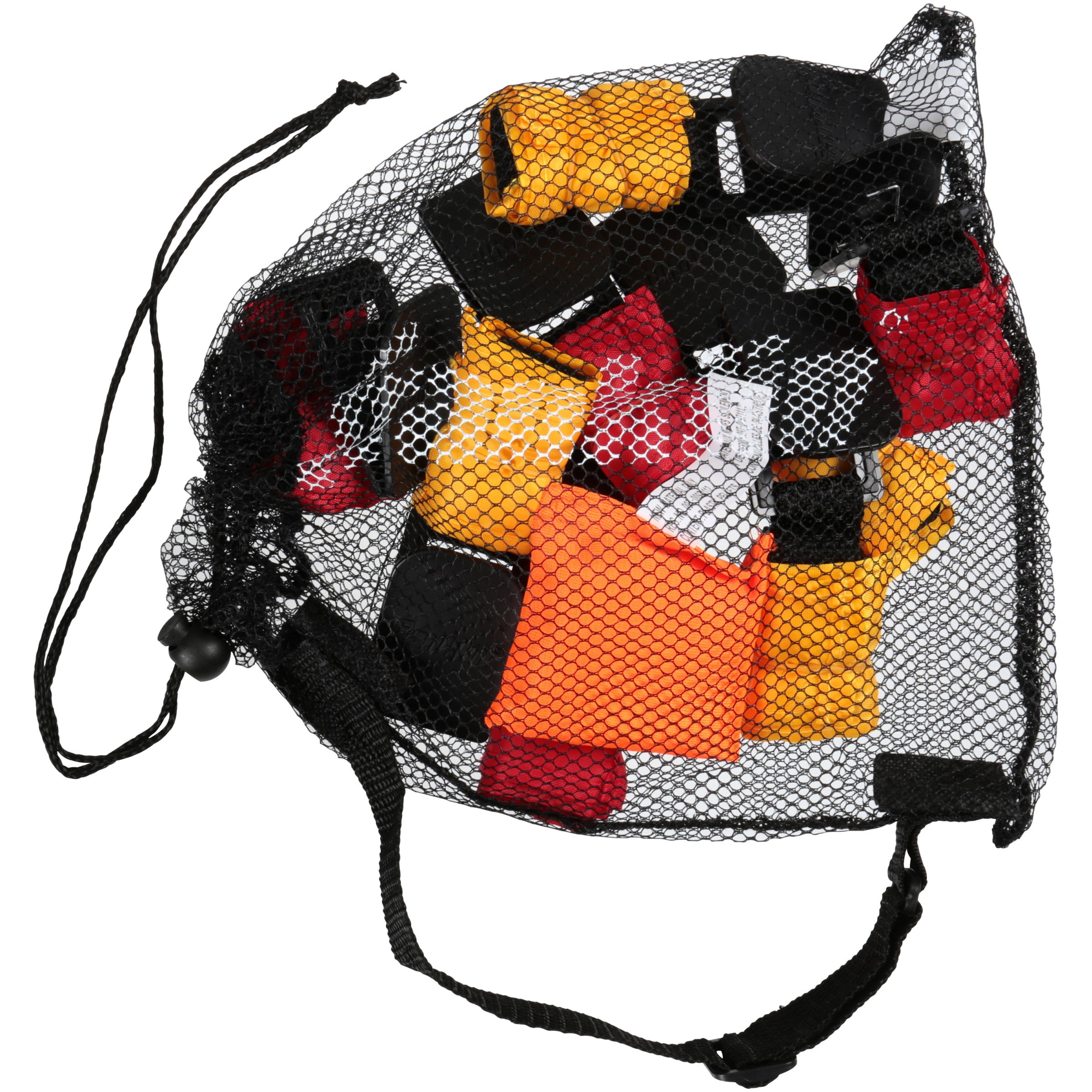 Set up a game whenever you want with the Franklin Sports 8-Player Flag Football Set. It’s suited for training or friendly matches in different places, such as clubs, schools, neighborhood open fields, backyards and more. This football training set is designed to field two teams of four players. Each belt includes two flags and the entire belt is pulled away at contact. The belt quickly reattaches with a quick clip. The Franklin Sports flag football set also comes with an orange field marker and a carry bag for easy transport and handling. This set is suited for use with players aged 6 years and older.