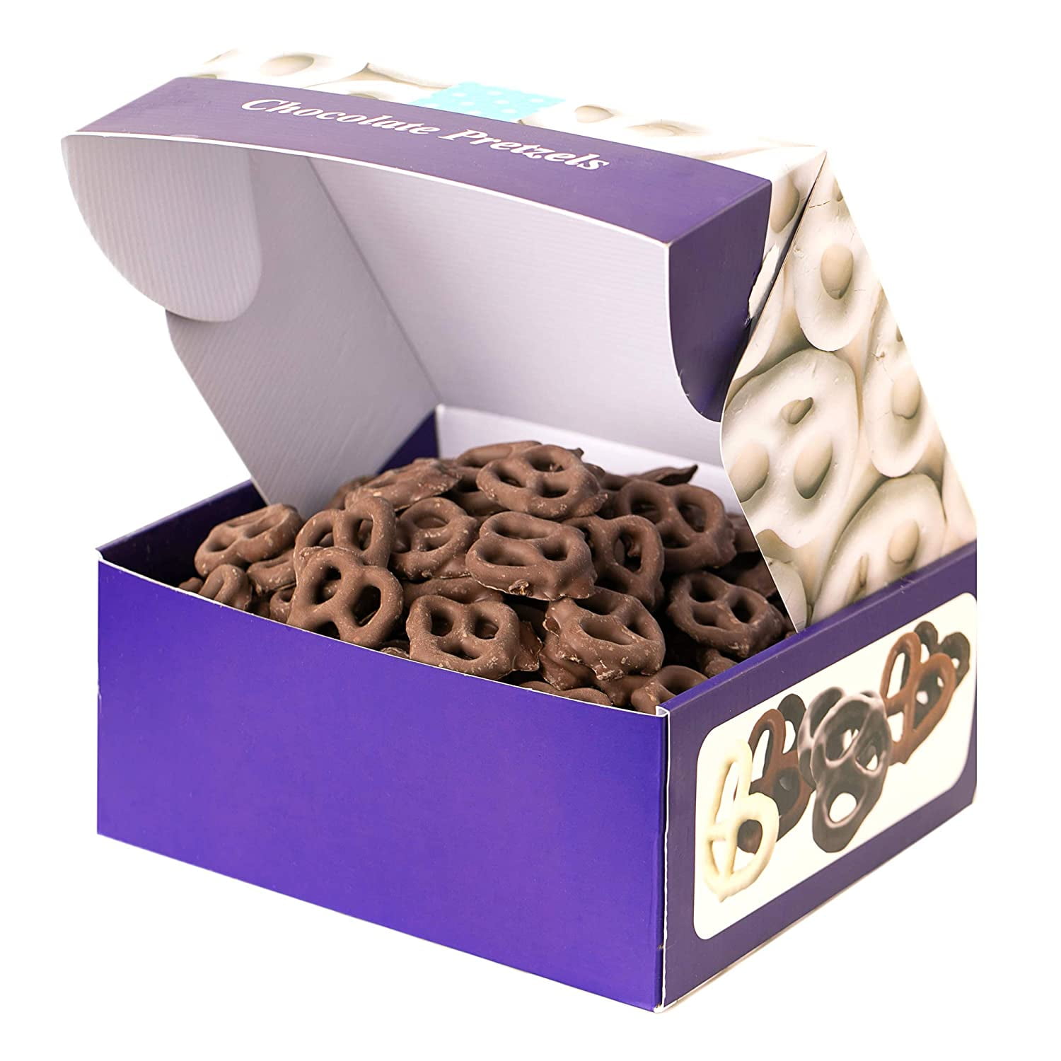 - Sweet, Salty and Crunchy Milk Chocolate Covered Pretzels, 2.5 pound box – approximately 187 pieces per order!