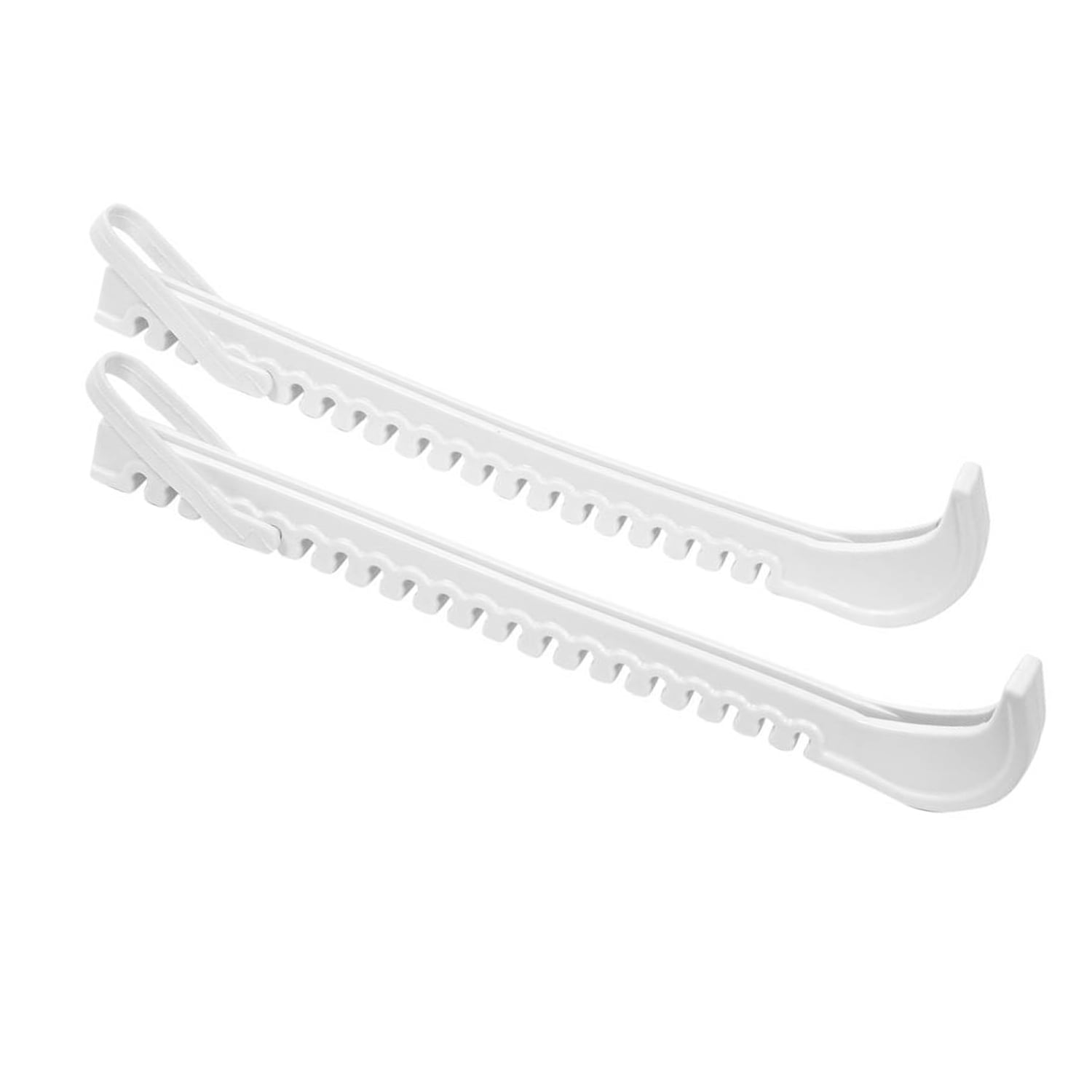 Future Stars Heavy Duty Skate Guards that fit Figure Skates and can adjust to fit any size skate! Set of 2 White rubber protective skate guards. Extended front cover to protect the front toe pick. Junior or senior skates
