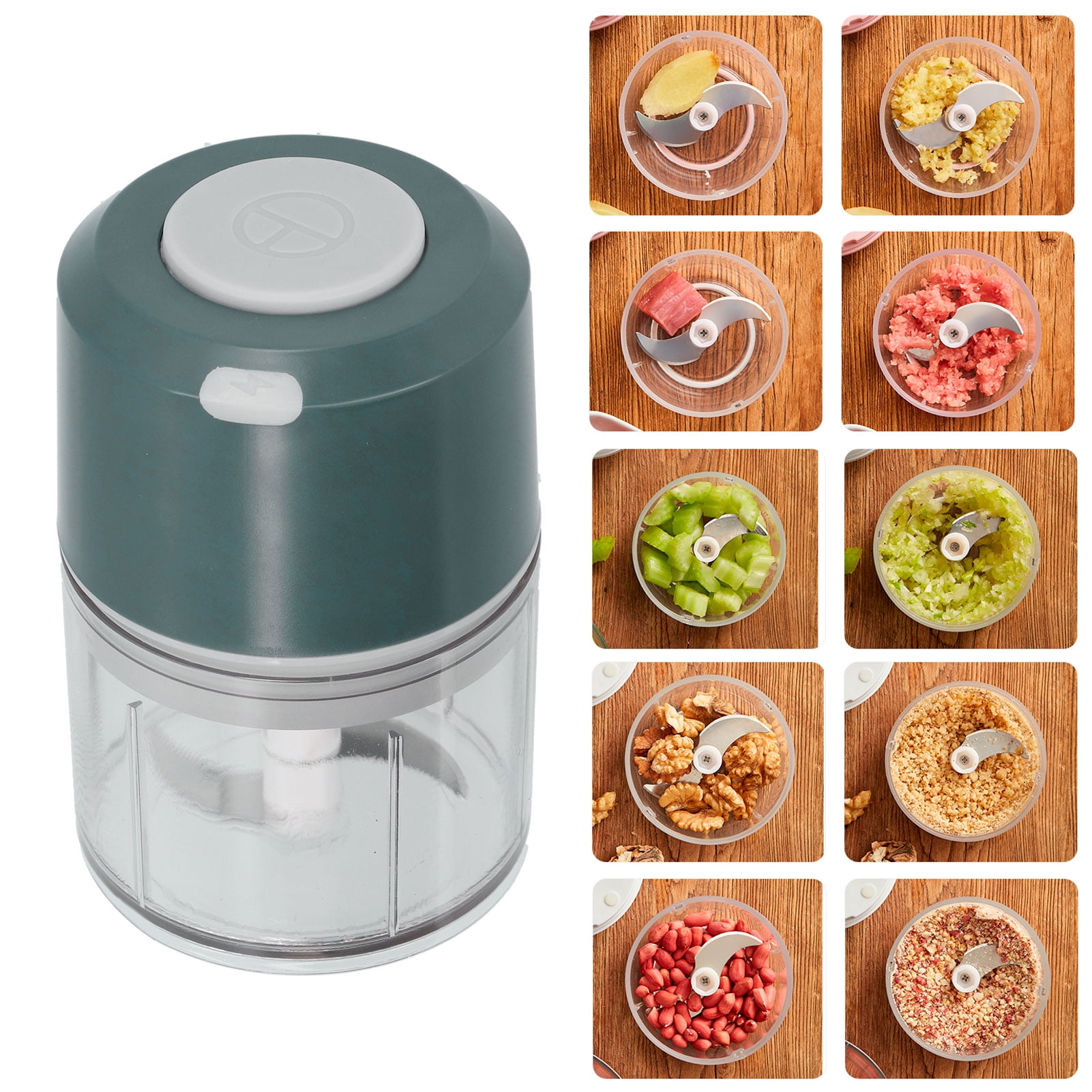 Garlic Mincer, Double-Layer Stainless Steel Cutter Head USB Rechargeable Food Processor for Ginger for Kitchen Green