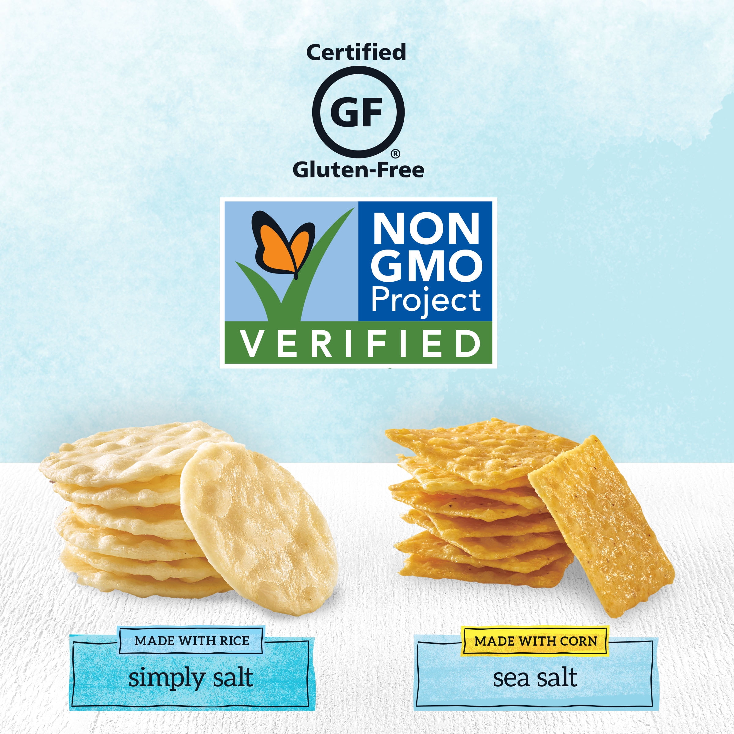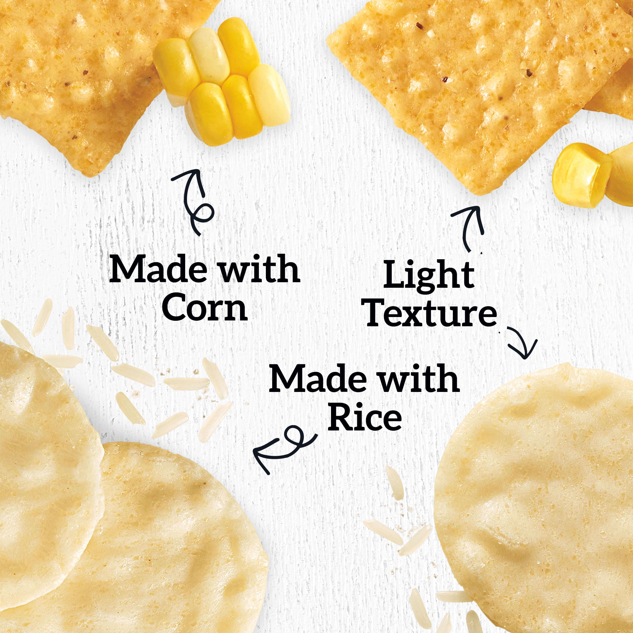 - Simply salted to give these corn and rice crackers a versatile flavor and baked for a crispy texture