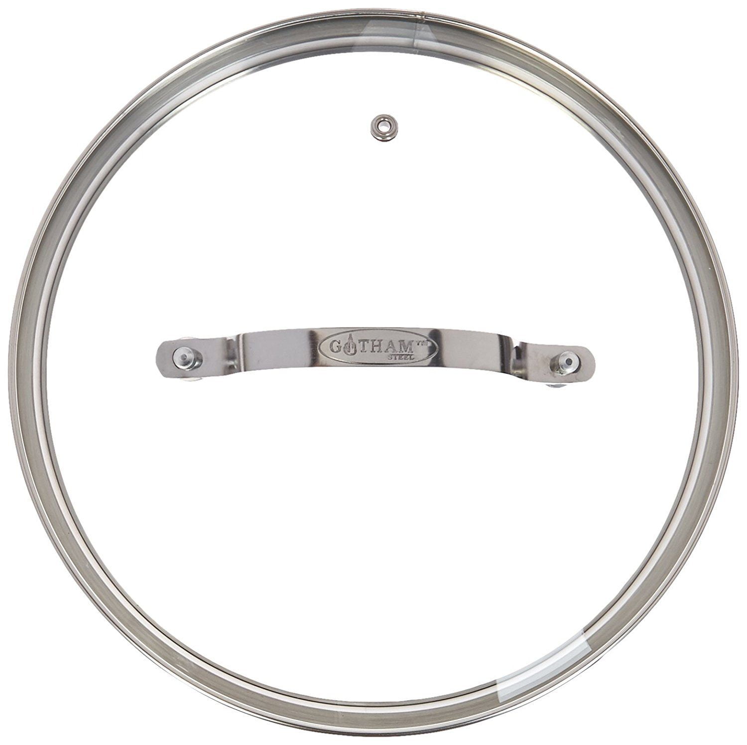 Complement your Gotham Steel pans with the perfect fitting tempered glass lid from Gotham Steel. Durable tempered glass lets you check the progress of your meals without losing heat when lifting the lid. Like the pans, the lid is oven safe to 500º. Gotham Steel frying pan lids feature clear tempered glass and stainless steel handles and rims. For use with Gotham Steel fry pans, matching lids are made of glass with stainless steel handle and rim and are dishwasher safe.