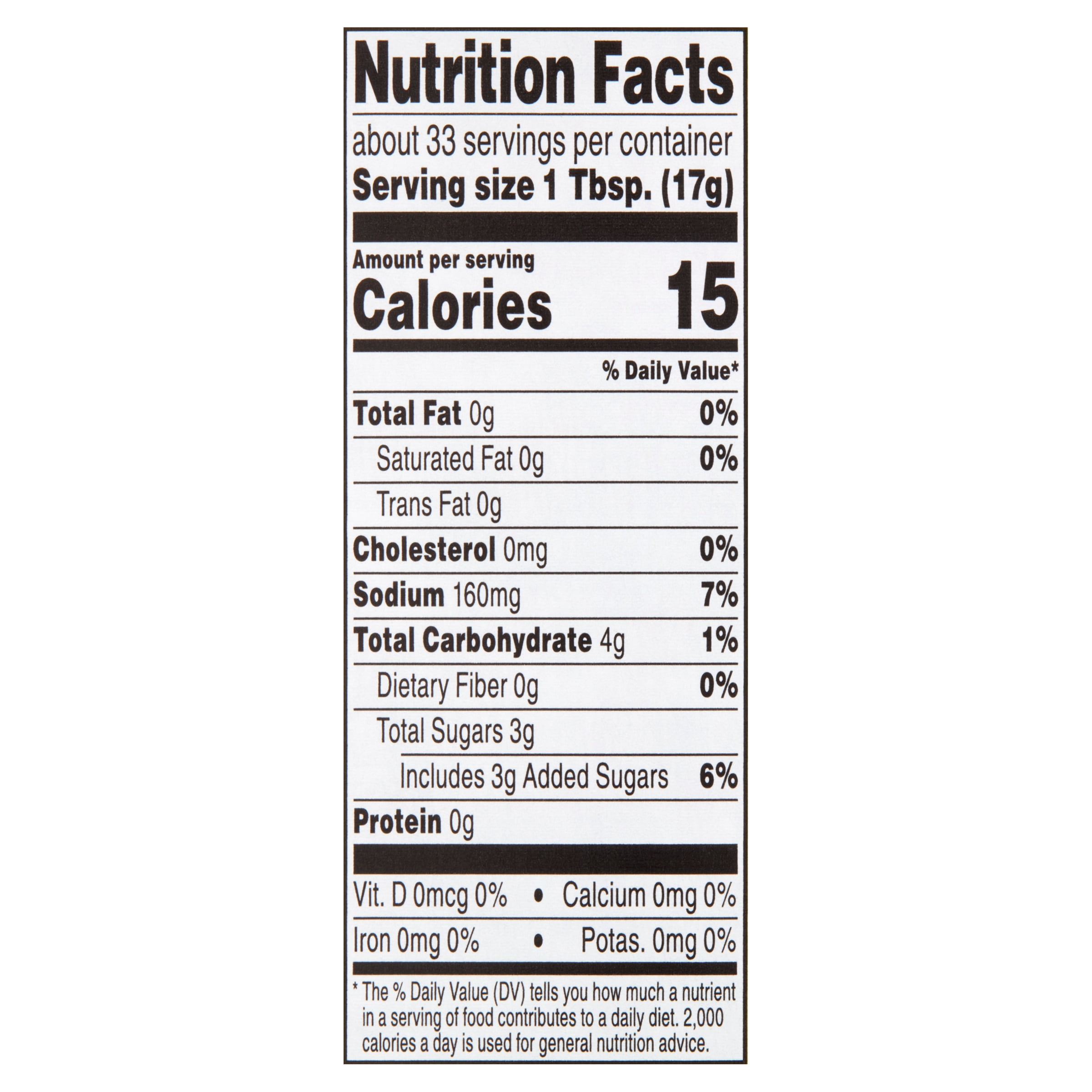 - 15 calories per serving