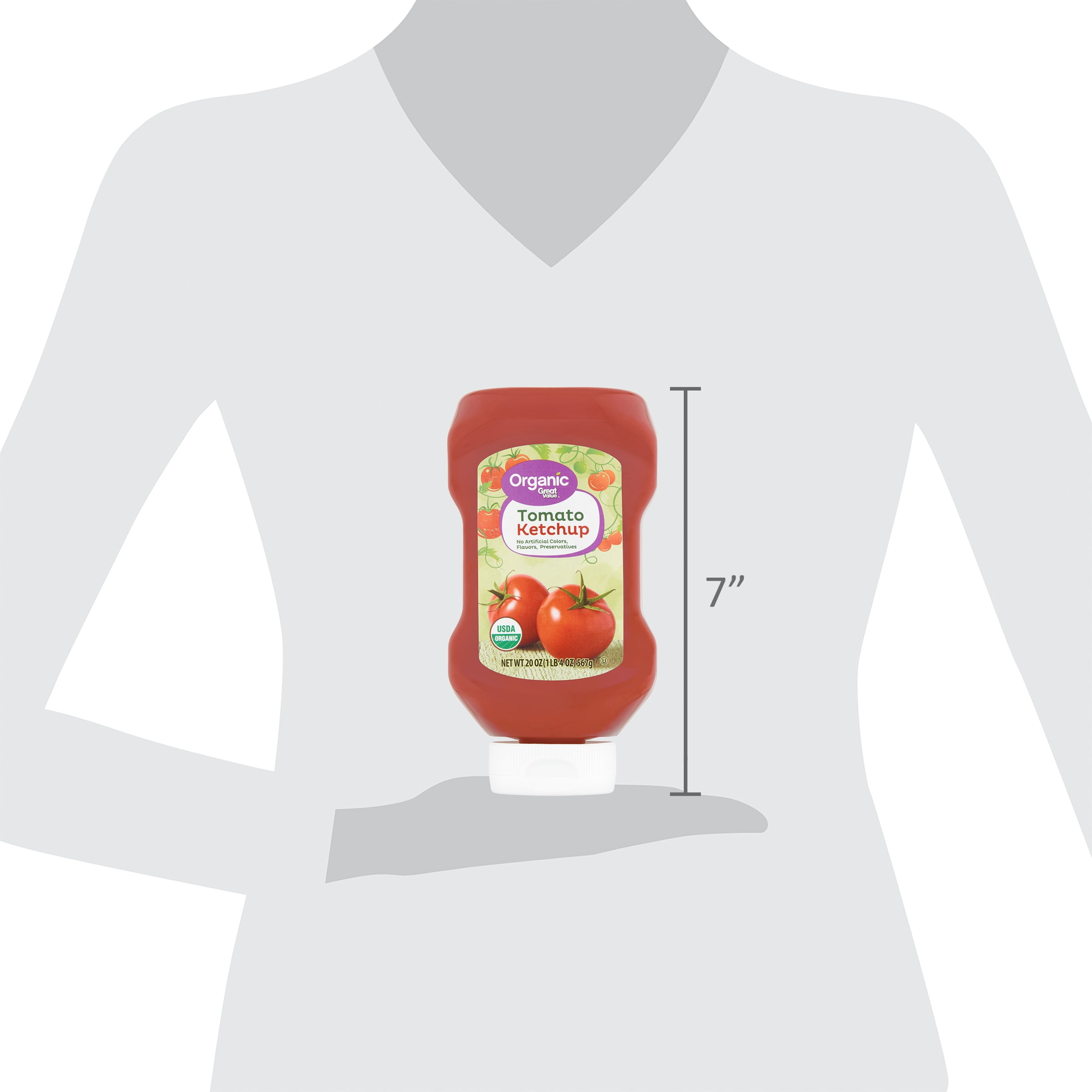 Meals just taste better when topped with Great Value Organic Tomato Ketchup. This ketchup contains no artificial flavors or preservatives and is made with wholesome ingredients like organic tomato concentrate, distilled vinegar, and spices. Add some of this tasty condiment to your morning scrambled eggs, a grilled burger or hotdog, or include it in your favorite meatloaf recipe for dinner. Each serving is only 15 calories and fat free. Delight your taste buds with the classic flavor of Great Value Organic Tomato Ketchup.