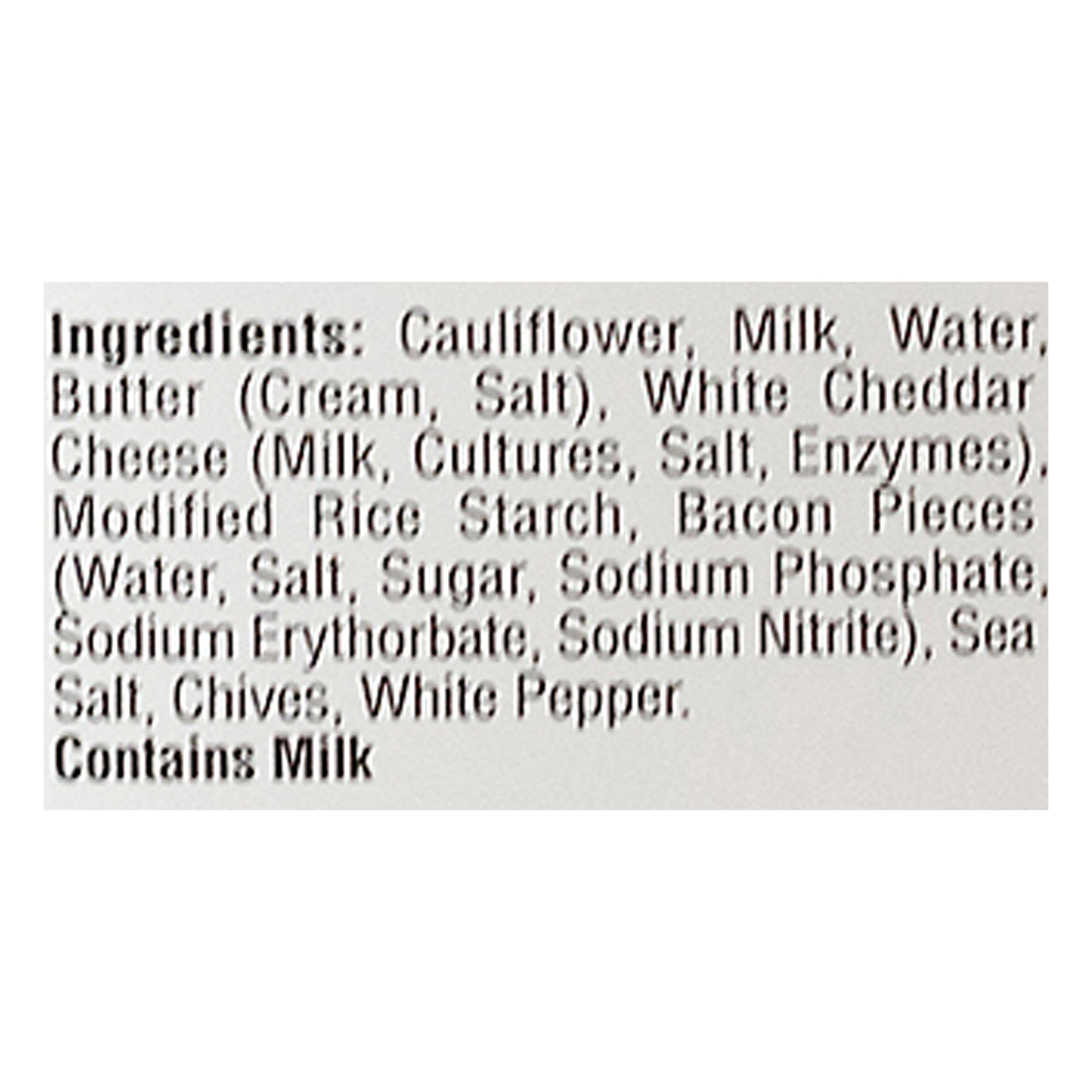 - Includes white cheddar cheese, bacon pieces and one full serving of cauliflower in each serving