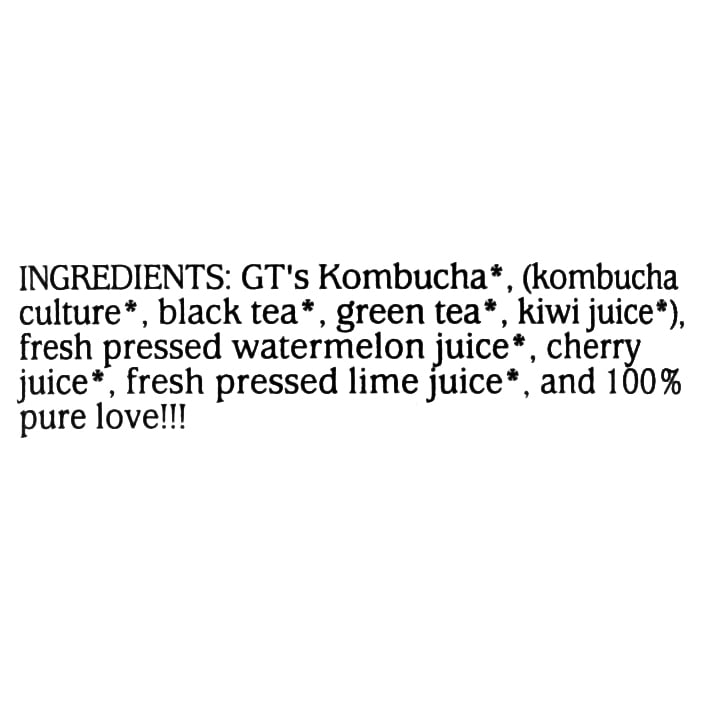 - Made with organically produced kombucha culture; black and green teas; kiwi, cherry, and fresh-pressed watermelon and lime juices