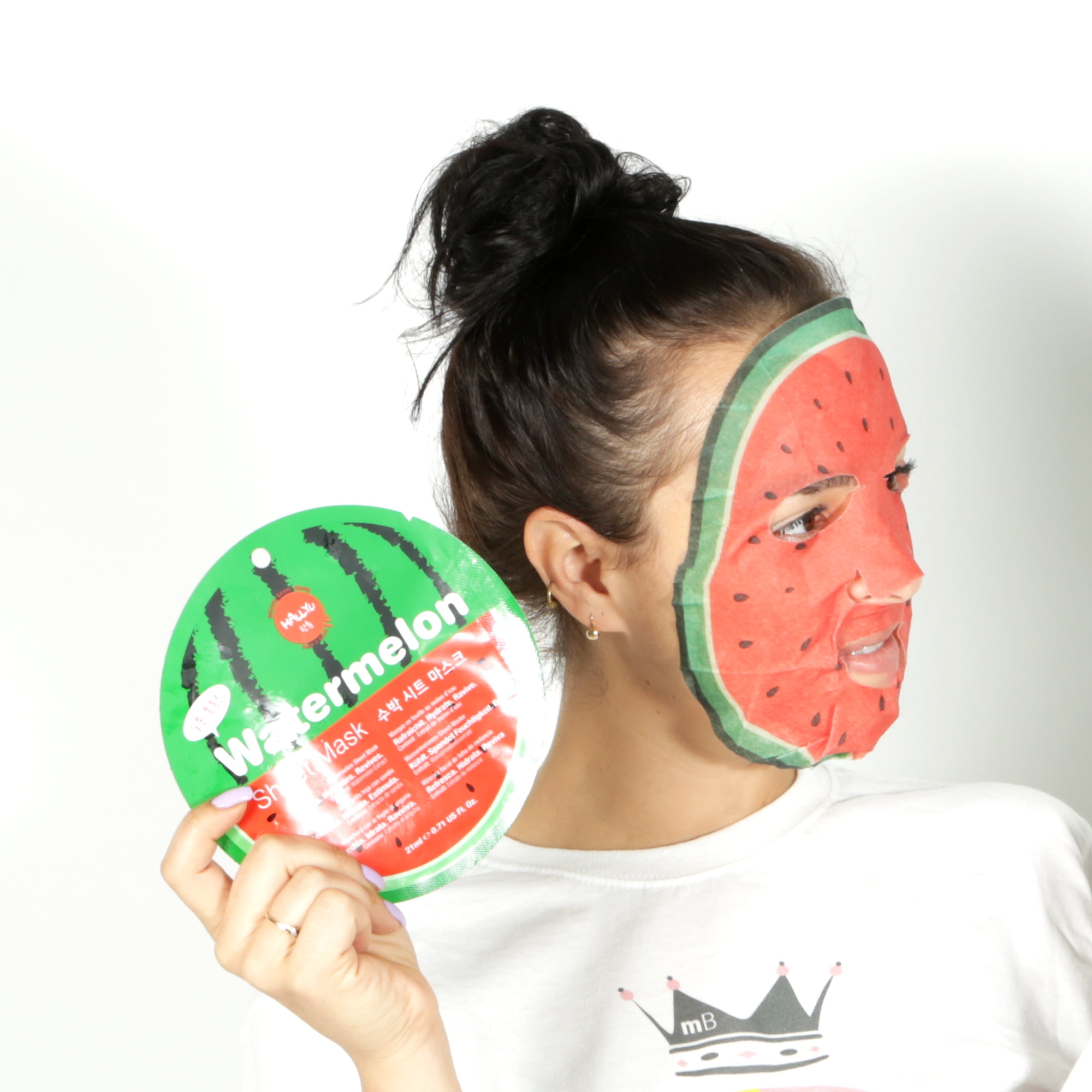 This Hallyu Watermelon printed sheet mask is infused with Watermelon extract that deeply moisturizes, effectively restores skin radiance, softness and improves elasticity.