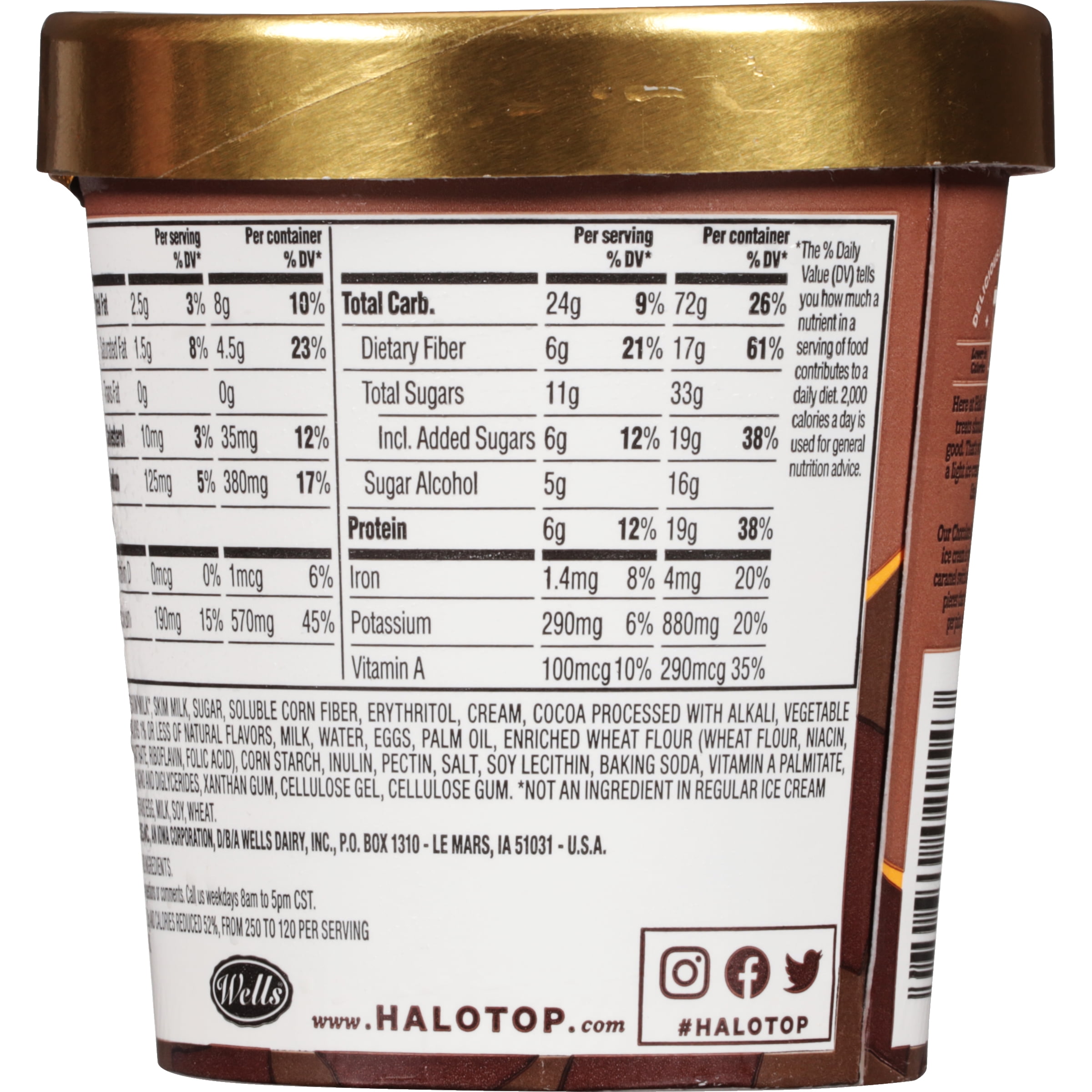 Halo Top Chocolate Caramel Brownie Light Ice Cream lets you enjoy the chocolatey richness and that amazing fresh out of the oven feeling while you pursue your path to wellness. This delicious flavor features chocolate light ice cream packed with luscious caramel swirls and delicious brownie pieces, along with ultrafiltered skim milk and other high-quality ingredients to create a creamy, light ice cream that actually tastes like ice cream. While you prioritize your wellness, love yourself more with this protein-packed frozen dessert that contains 52% fewer calories and 79% less fat than leading ice creams. A delicious Kosher treat, this light ice cream is a great choice for special occasions, at-home date nights or relaxing self care evenings. You can also use this brownie light ice cream to make frozen ice cream treats, like ice cream sandwiches or ice cream sundaes, for a sweet pick-me-up after a long day. Halo Top light ice cream comes in an easy to store, resealable package, so you can keep it until you’re ready to enjoy a classic frozen treat with a modern twist.