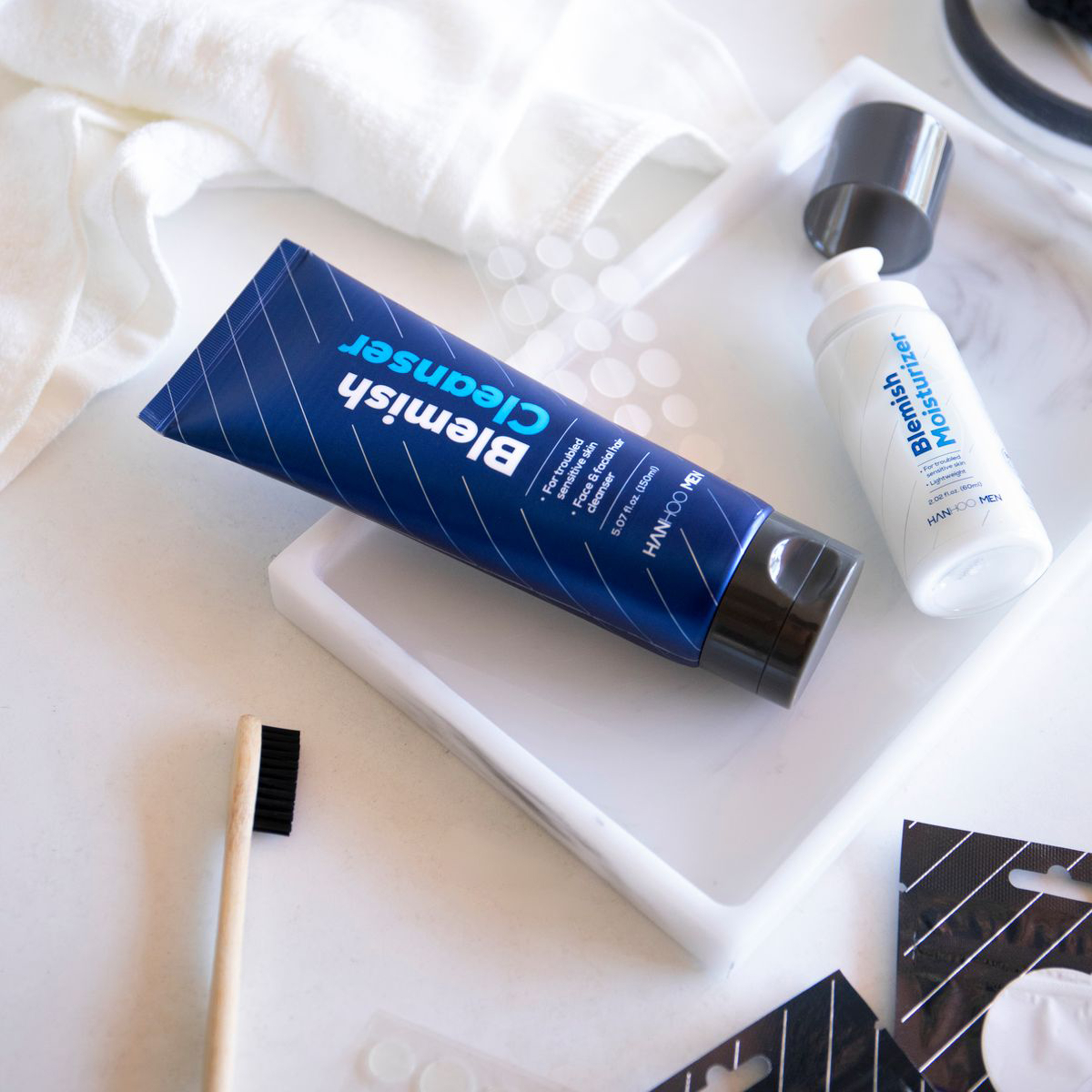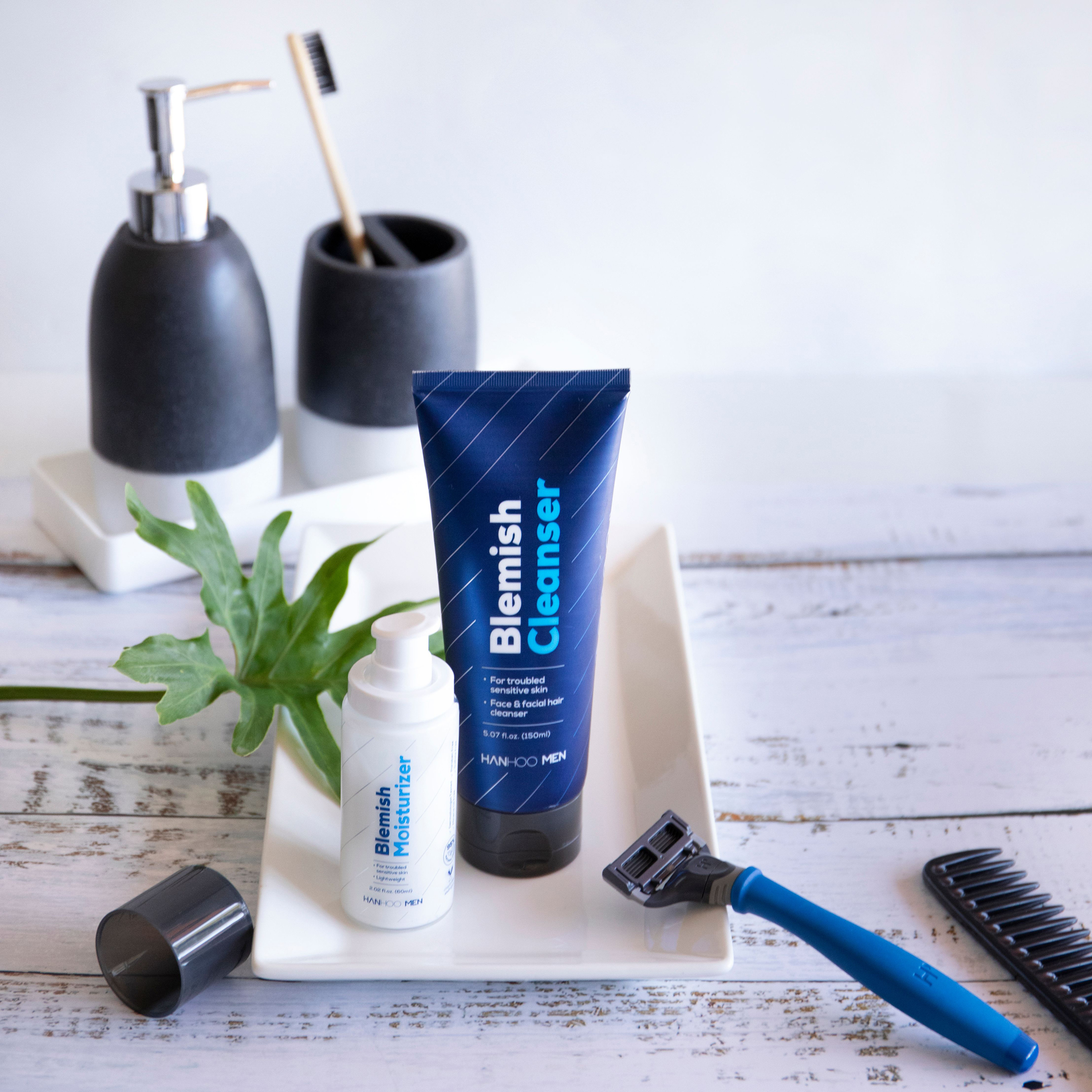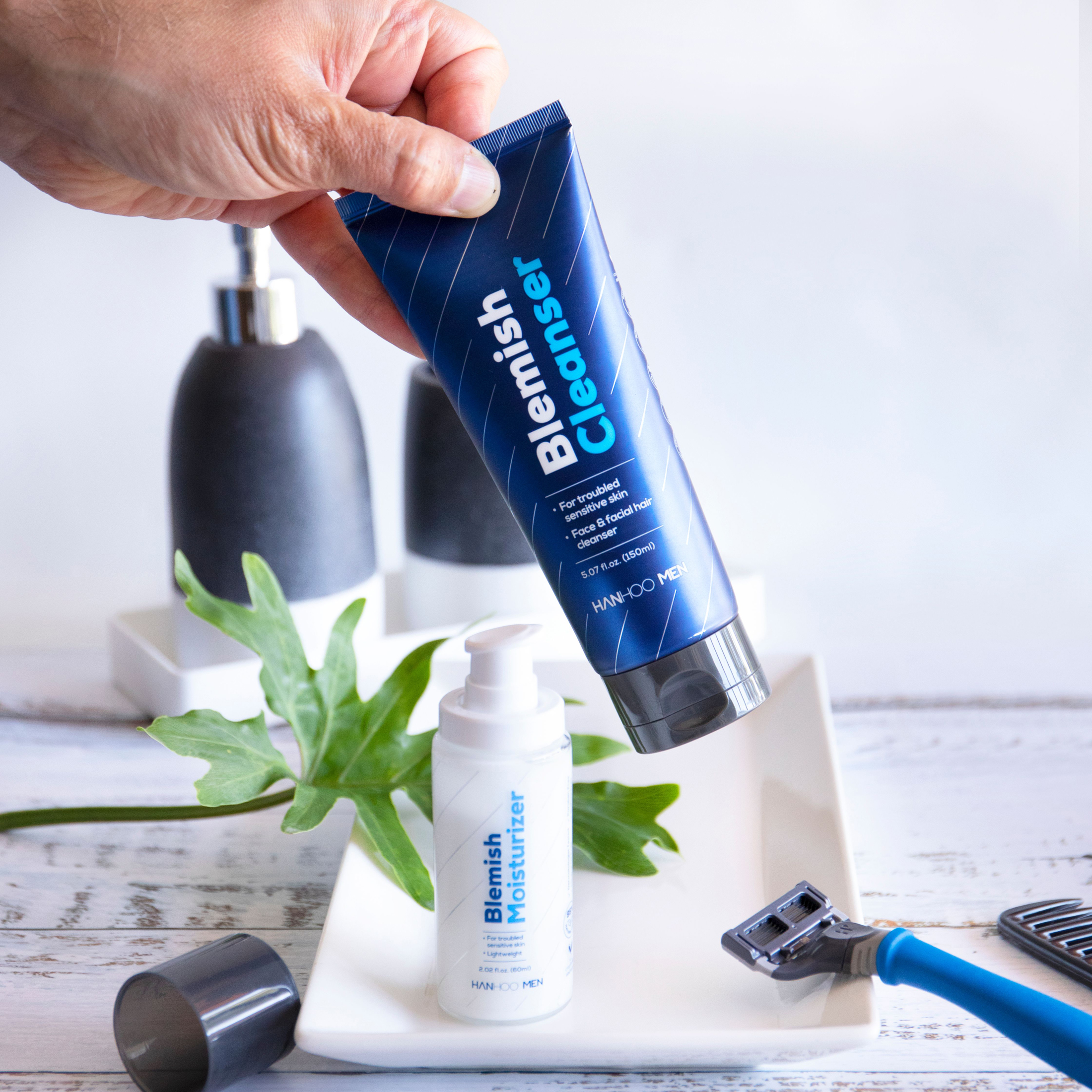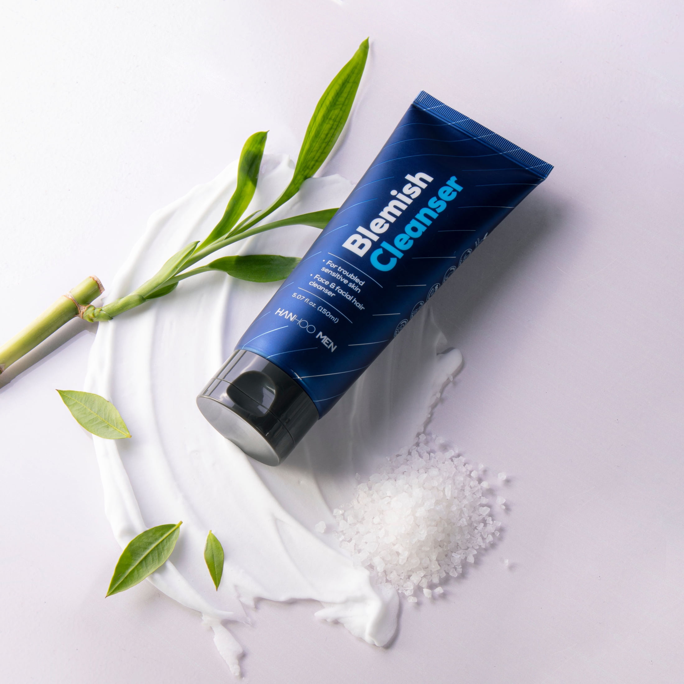 Start the day with a great cleanse to keep sensitive, blemish-prone skin happy and healthy. Hanhoo Men’s Blemish Cleanser is a multifunctional face and facial hair wash that deeply cleanses to remove impurities, reduce blemishes, acne, and unclog pores. Made with over 90% naturally derived ingredients to be gentle, yet effective on your skin. Formulated with Bamboo, Sea Salt, Hyaluronic Acid, Tea Tree Oil, and Probiotics to repair and support the skin. Creamy texture keeps skin hydrated while the refreshing Tea Tree scent cools and energizes the senses. Healthy skin is just one cleanse away.