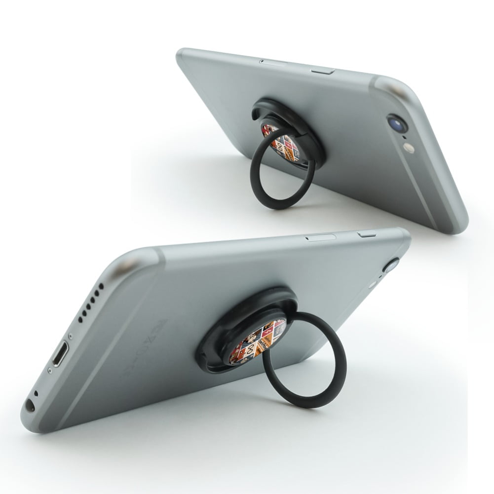 Drop your phone no more! You’ll comfortably and securely hold your phone one-handed using this unique ring grip. The self-adhesive grip includes the resin-topped design as shown for a completely original and useful phone accessory. Attaches directly to your phone or to your phone’s case, and is removable and reusable. The ring grip is made from plastic and is approximately 1.4" (3.6cm) in diameter.