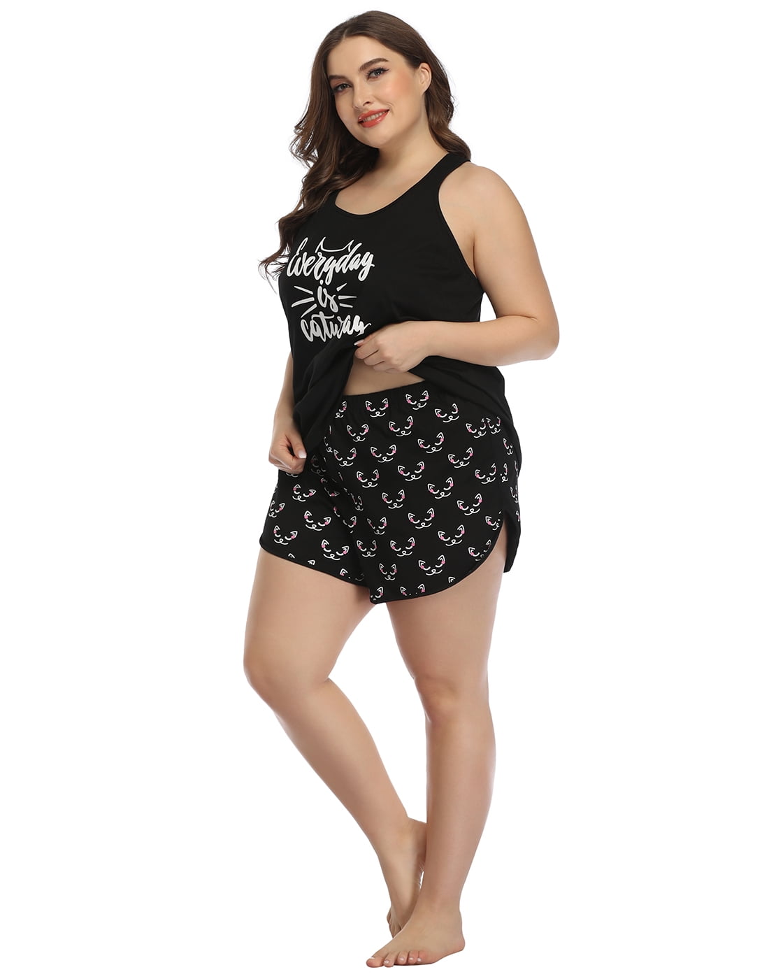 - BE FASHIONABLE AT THE PAJAMA PARTY: Choose from our collection of fun graphic tanks paired with plus size pajama shorts, to make all your girlfriends jealous of your super-cute and comfy wine pajamas for women.