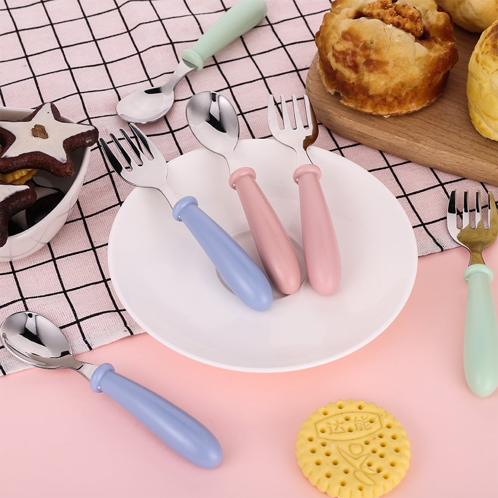 ãEasy to Self FeedingãThis toddler utensil set features a curved handle that is easy for children to grasp, helping your baby learn to eat, and the deeper spoon bowl makes it easier to scoop food and liquids. Great for your baby to learn to feed themselves.