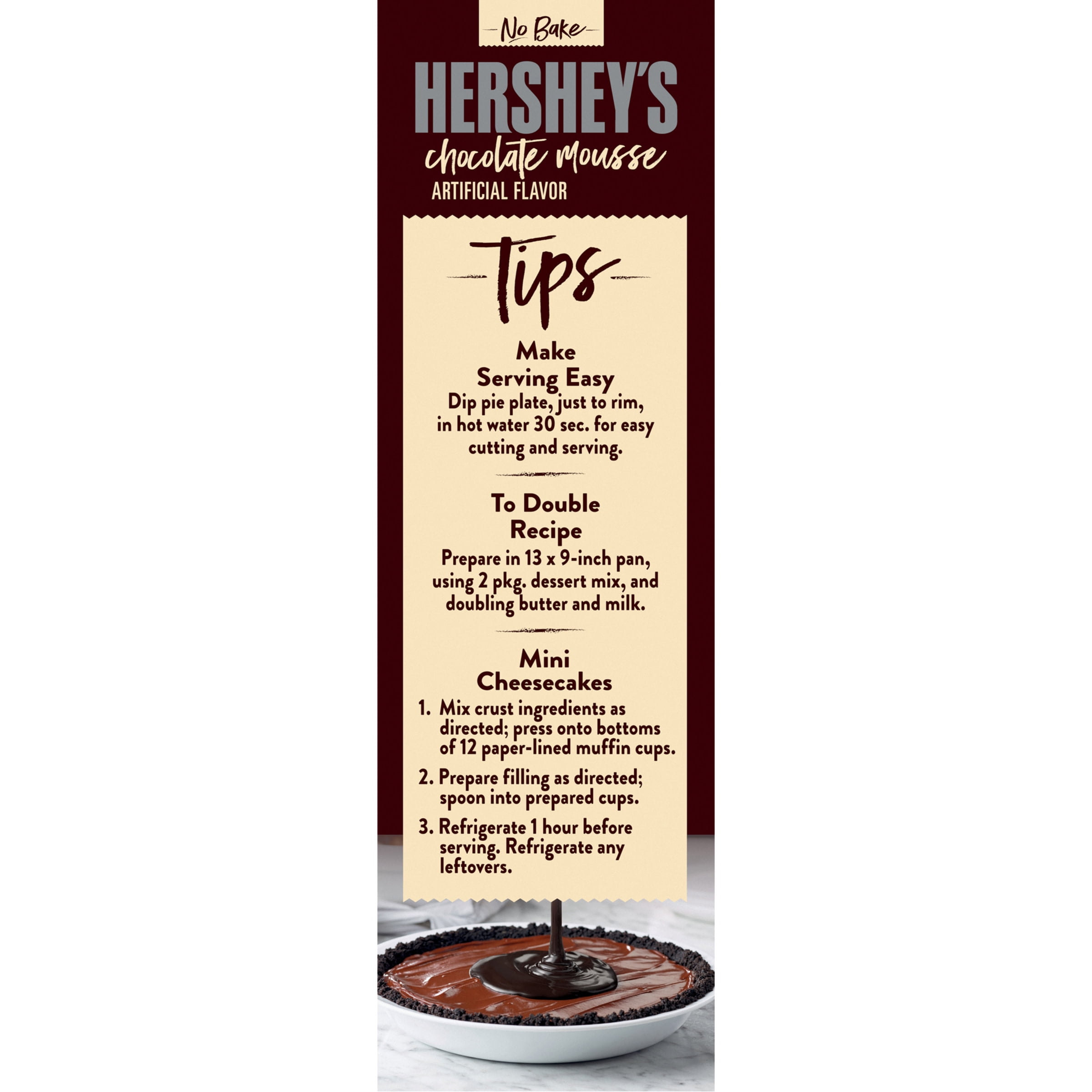 - Hershey’s Chocolate Mousse Mix makes a yummy mousse dessert without baking