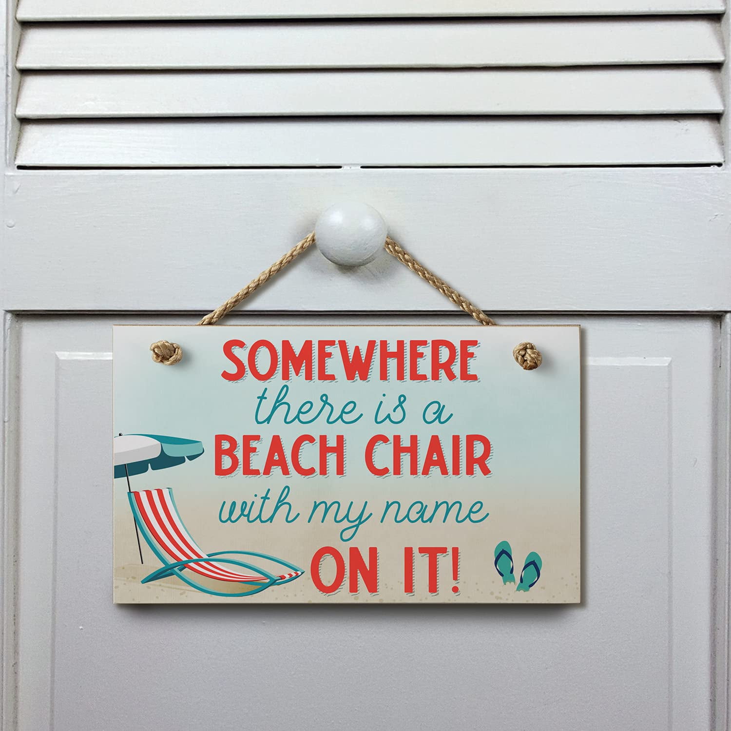 Highland Home ‘Somewhere There Is A Beach Chair’ Decorative Hanging Wood Sign 9.5′ by 5.75′