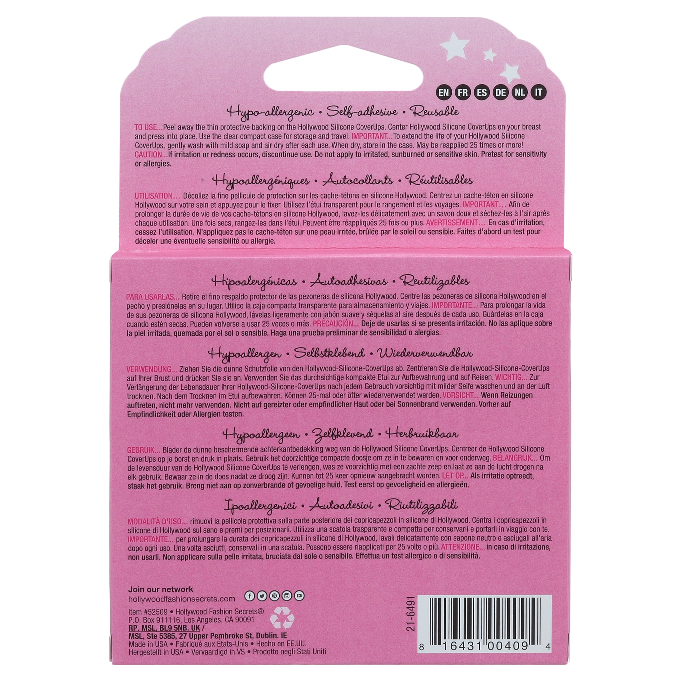 Pesky perkies can pop up at the least opportune moments. Meet Secret No. 4, Hollywood Silicone CoverUps®, which are self-adhesive, hypoallergenic and comfortable nipple covers. The contour shape boasts a perfectly engineered tapered edge to give you that ultra-smooth appearance.HOLLYWOOD FASHION SECRETS COVERUPS