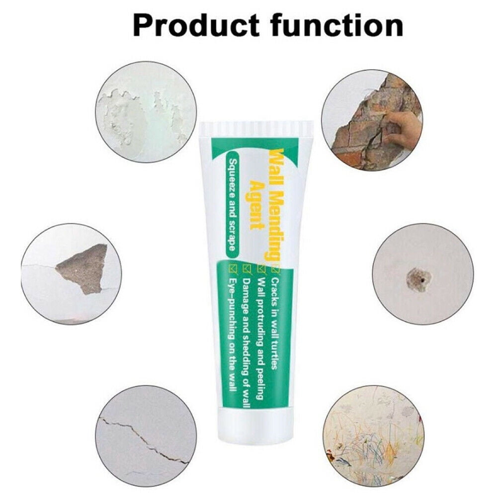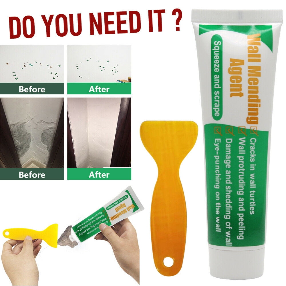 Everything you need for wall mending— all in one easy tool. The product creates a quick-drying patch. It dries hard enough to hold a nail or screw. And the mending will be virtually invisible, then giving you professional-looking results.