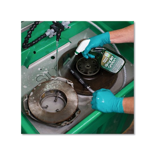 A powerful all-purpose cleaner and degreaser that provides a safer alternative to other cleaners, bleaches and solvents. The trusted formula is non-abrasive and non-corrosive, and is recognized by the U.S. EPA’s Safer Choice Program. Safe for all washable surfaces, Simple Green can be used to remove heavy dirt, grease, food residue and stains from any washable surface including countertops, sinks, tile, carpet, flooring, upholstery and more. The cost-effective concentrate can be used manually or in cleaning equipment such as floor scrubbers, dip tanks, carpet extractors, pressure washers, parts washers, steam extractors and foamers. It easily cuts through tough grease, oils, cutting fluids, built-up grime and residue on equipment, engines, machinery, vehicles and manufactured parts, making it ideal for a wide range of industries including janitorial, manufacturing, MRO, food processing, mining, automotive, transportation and engineering. Application: Degreaser/Cleaner Applicable Material: Carpet Ceramics Cement/Concrete Enamel Fabric Fiberglass Laminates Metal Plastic Upholstery Chemical Compound: Water based non-ionic surfactant Dirt Types: Grease Grime Lubricants Oil-Based Soil.